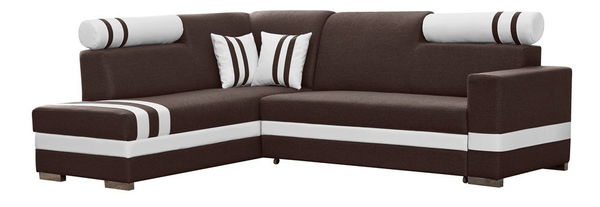 Rohová sedací souprava Reinaldo (tmavě hnědá + bílá) (L)