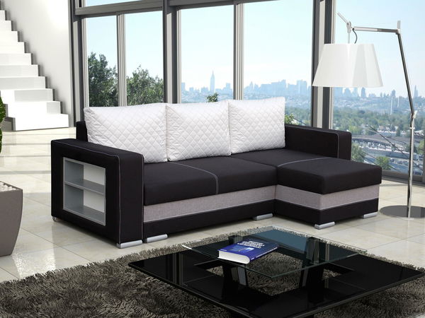 Rohová sedací souprava Rivea (černá + šedá) (P)
