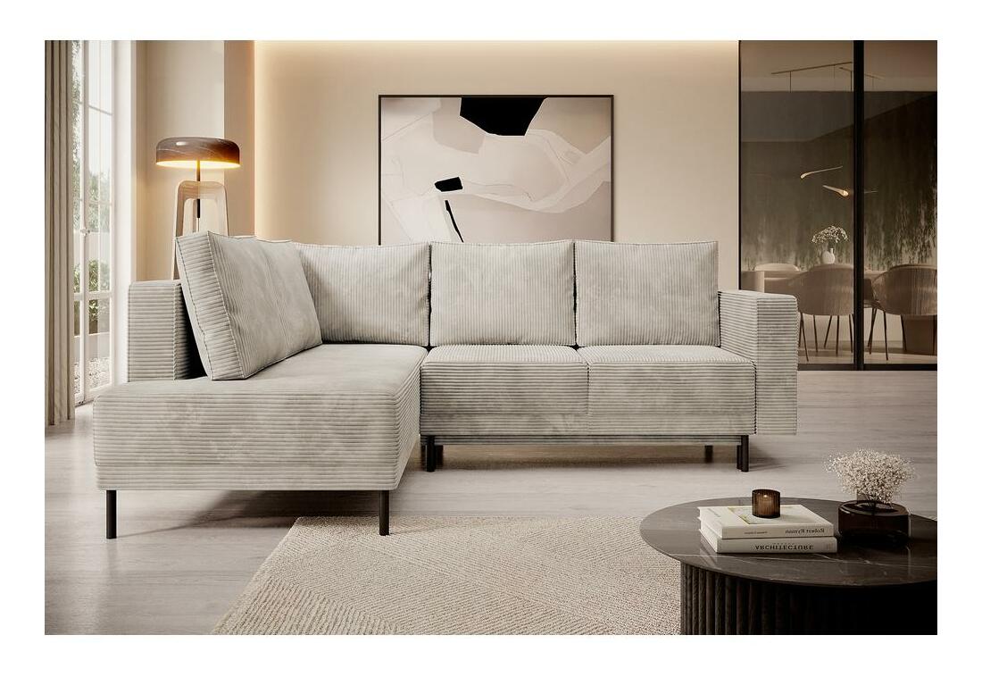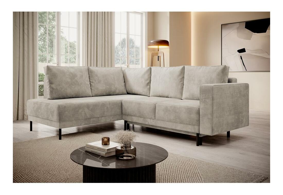 ZobrazitSníte o stylovém obývacím pokoji, kde si budete moci pohodlně odpočinout? Rohová sedačka bude hitem Rohová sedačka je tvarem se současným designem, který dokonale zapadne do každého módního interiéru. Jednoduchá, minimalistická forma, štíhlé černé nohy a měkké polštáře na opěradle - to vše činí mimořádně okouzlujícím a bude ideálním místem k odpočinku po náročném dni. Rohová sedačka je vybavena funkcí na spaní a snadno ovladatelným DL mechanismem, díky kterému nábytek rychle přeměníte na pohodlnou postel pro své hosty. disponuje také prostorným kontejnerem, do kterého můžete uložit náhradní sadu ložního prádla a jiného textilu Podrobnosti o produktu: nábytek je ve tvaru L, rohová sedačka je na levé straně, ozdobné lemování dodává celku eleganci, praktické područky umožňují. pro pohodlné opření rukou, výška loketní opěrky: 68 cm, šířka loketní opěrky: 16 cm, nábytek čalouněný látkou Poso 02 v tmavé béžové barvě, Poso je látka ve stylu manšestru. Povrch pokrytý tlustými pruhy je příjemný na dotek. Vyznačuje se vysokou odolností proti oděru, tření a světlu.