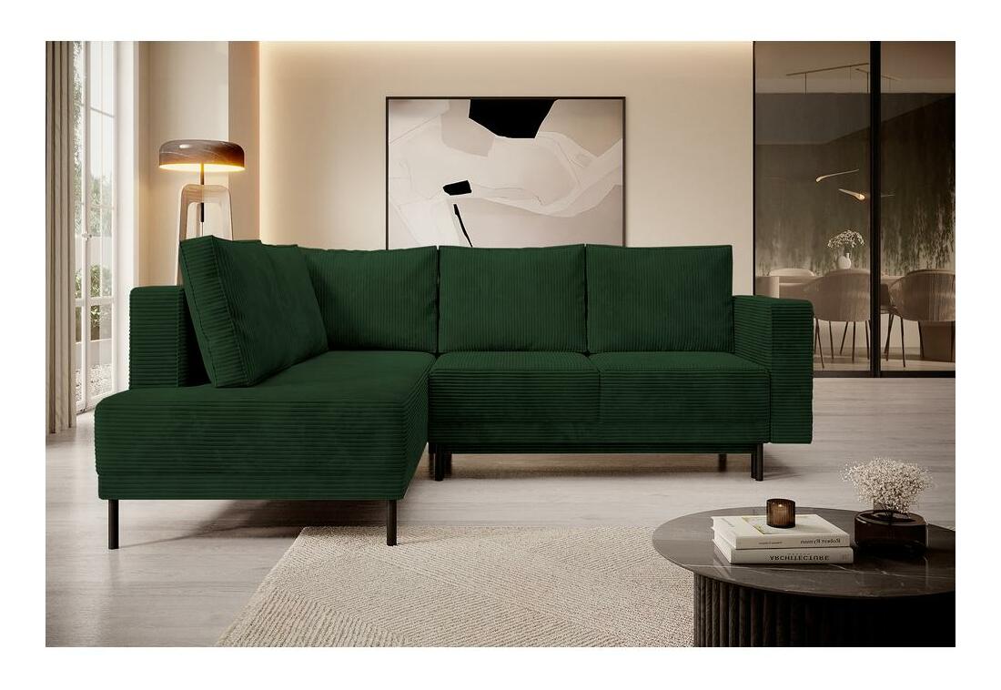 ZobrazitSníte o stylovém obývacím pokoji, kde si budete moci pohodlně odpočinout? Rohová sedačka bude hitem Rohová sedačka je tvarem se současným designem, který dokonale zapadne do každého módního interiéru. Jednoduchá, minimalistická forma, štíhlé černé nohy a měkké polštáře na opěradle - to vše činí mimořádně okouzlujícím a bude ideálním místem k odpočinku po náročném dni. Rohová sedačka je vybavena funkcí na spaní a snadno ovladatelným DL mechanismem, díky kterému nábytek rychle přeměníte na pohodlnou postel pro své hosty. disponuje také prostorným kontejnerem, do kterého můžete uložit náhradní sadu ložního prádla a jiného textilu Podrobnosti o produktu: nábytek je ve tvaru L, rohová sedačka je na levé straně, ozdobné lemování dodává celku eleganci, praktické područky umožňují. pro pohodlné opření rukou, výška loketní opěrky: 68 cm, šířka loketní opěrky: 16 cm, nábytek čalouněný látkou Poso 14 v tmavě zelené barvě, Poso je látka ve stylu manšestru. Povrch pokrytý tlustými pruhy je příjemný na dotek. Vyznačuje se vysokou odolností proti oděru, tření a světlu.
