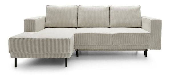 ZobrazitSníte o stylovém obývacím pokoji, kde si budete moci pohodlně odpočinout? Rohová sedačka bude hitem Rohová sedačka je tvarem se současným designem, který dokonale zapadne do každého módního interiéru. Jednoduchá, minimalistická forma, štíhlé černé nohy a měkké polštáře na opěradle - to vše činí mimořádně okouzlujícím a bude ideálním místem k odpočinku po náročném dni. Rohová sedačka je vybavena funkcí na spaní a snadno ovladatelným DL mechanismem, díky kterému nábytek rychle přeměníte na pohodlnou postel pro své hosty. disponuje také prostorným kontejnerem, do kterého můžete uložit náhradní sadu ložního prádla a jiného textilu Detaily produktu: nábytek je ve tvaru L, rohová sedačka je levostranná, dekorační manšestrová látka a lemování dodávají celku eleganci, praktické područky. vám umožní pohodlně si opřít ruce, nábytek je čalouněný látkou ;Poso 100 v šedé béžové barvě Poso je látka stylizovaná jako manšestr. Povrch pokrytý tlustými pruhy je příjemný na dotek. Vyznačuje se vysokou odolností proti oděru, tření a světlu.