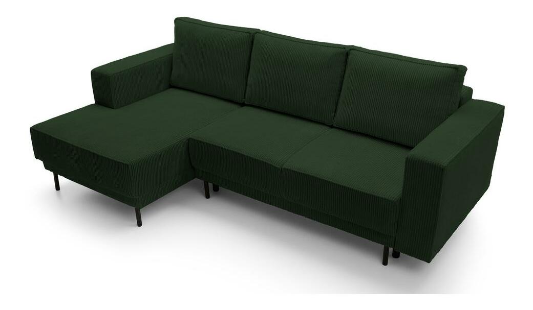 ZobrazitSníte o stylovém obývacím pokoji, kde si budete moci pohodlně odpočinout? Rohová sedačka bude hitem Rohová sedačka je tvarem se současným designem, který dokonale zapadne do každého módního interiéru. Jednoduchá, minimalistická forma, štíhlé černé nohy a měkké polštáře na opěradle - to vše činí mimořádně okouzlujícím a bude ideálním místem k odpočinku po náročném dni. Rohová sedačka je vybavena funkcí na spaní a snadno ovladatelným DL mechanismem, díky kterému nábytek rychle přeměníte na pohodlnou postel pro své hosty. disponuje také prostorným kontejnerem, do kterého můžete uložit náhradní sadu ložního prádla a jiného textilu Detaily produktu: nábytek je ve tvaru L, rohová sedačka je levostranná, dekorační manšestrová látka a lemování dodávají celku eleganci, praktické područky. vám umožní pohodlně si opřít ruce, nábytek je čalouněný látkou ;Poso 14 v tmavě zelené barvě Poso je látka ve stylu manšestru. Povrch pokrytý tlustými pruhy je příjemný na dotek. Vyznačuje se vysokou odolností proti oděru, tření a světlu.