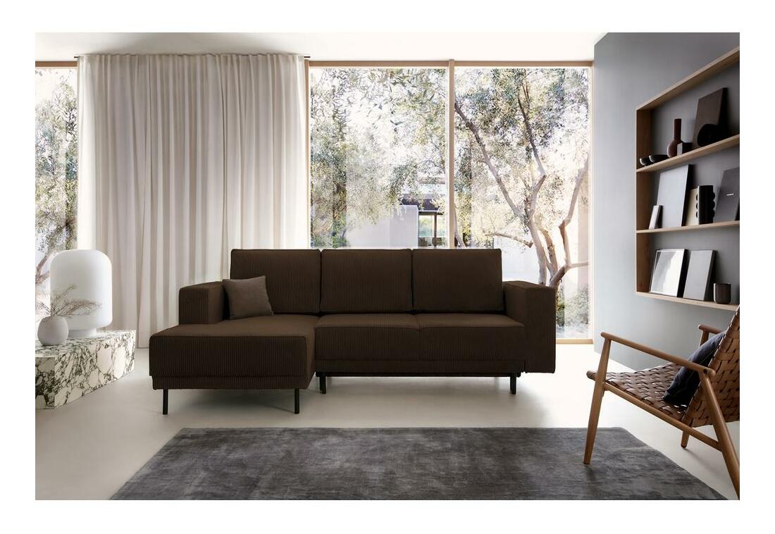 ZobrazitSníte o stylovém obývacím pokoji, kde si budete moci pohodlně odpočinout? Rohová sedačka bude hitem Rohová sedačka je tvarem se současným designem, který dokonale zapadne do každého módního interiéru. Jednoduchá, minimalistická forma, štíhlé černé nohy a měkké polštáře na opěradle - to vše činí mimořádně okouzlujícím a bude ideálním místem k odpočinku po náročném dni. Rohová sedačka je vybavena funkcí na spaní a snadno ovladatelným DL mechanismem, díky kterému nábytek rychle přeměníte na pohodlnou postel pro své hosty. disponuje také prostorným kontejnerem, do kterého můžete uložit náhradní sadu ložního prádla a jiného textilu Detaily produktu: nábytek je ve tvaru L, rohová sedačka je levostranná, dekorační manšestrová látka a lemování dodávají celku eleganci, praktické područky. vám umožní pohodlně si opřít ruce, nábytek je čalouněný látkou ;Poso 06 v tmavě hnědé barvě Poso je látka ve stylu manšestru. Povrch pokrytý tlustými pruhy je příjemný na dotek. Vyznačuje se vysokou odolností proti oděru, tření a světlu.