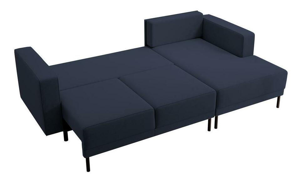 ZobrazitSníte o stylovém obývacím pokoji, kde si budete moci pohodlně odpočinout? Rohová sedačka bude hitem Rohová sedačka je tvarem se současným designem, který dokonale zapadne do každého módního interiéru. Jednoduchá, minimalistická forma, štíhlé černé nohy a měkké polštáře na opěradle - to vše činí mimořádně okouzlujícím a bude ideálním místem k odpočinku po náročném dni. Rohová sedačka je vybavena funkcí na spaní a snadno ovladatelným DL mechanismem, díky kterému nábytek rychle přeměníte na pohodlnou postel pro své hosty. disponuje také prostorným kontejnerem, do kterého můžete uložit náhradní sadu ložního prádla a jiného textilu Podrobnosti o produktu: nábytek má tvar L, rohová sedačka je na pravé straně, praktické područky umožňují pohodlné opření rukou, nábytku. je čalouněná látkou Castel 79 v námořnické modré Castel je měkká, hladká látka vyznačující se vysokou odolností proti tření, oděru a žmolkování, díky čemuž je ideální pro každodenní nábytek. Další výhodou je Easy Clean Technology – materiál se snadno čistí, což umožňuje snadné odstranění nečistot s trochou vody a měkkým hadříkem.