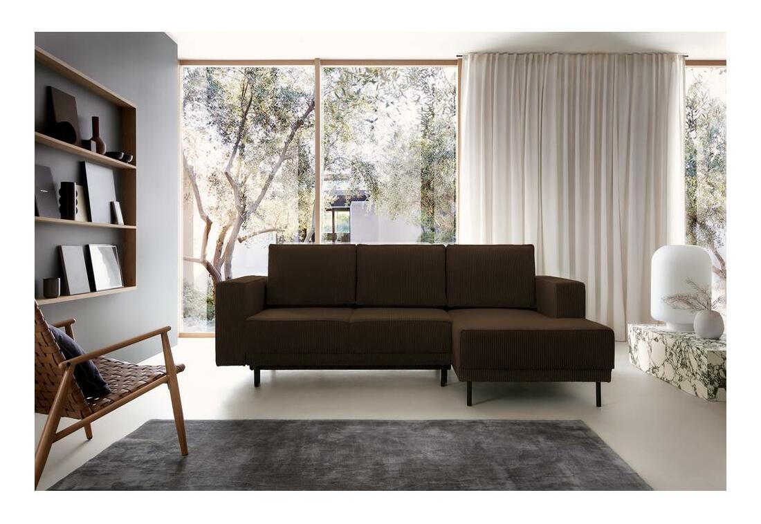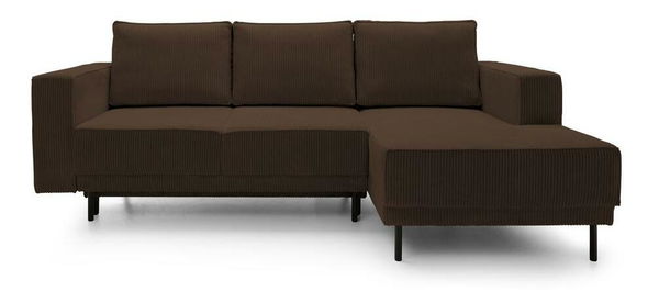 ZobrazitSníte o stylovém obývacím pokoji, kde si budete moci pohodlně odpočinout? Rohová sedačka bude hitem Rohová sedačka je tvarem se současným designem, který dokonale zapadne do každého módního interiéru. Jednoduchá, minimalistická forma, štíhlé černé nohy a měkké polštáře na opěradle - to vše činí mimořádně okouzlujícím a bude ideálním místem k odpočinku po náročném dni. Rohová sedačka je vybavena funkcí na spaní a snadno ovladatelným DL mechanismem, díky kterému nábytek rychle přeměníte na pohodlnou postel pro své hosty. disponuje také prostorným kontejnerem, do kterého můžete uložit náhradní sadu ložního prádla a jiného textilu Podrobnosti o produktu: nábytek je ve tvaru L, rohová sedačka je pravostranná, ozdobná manšestrová látka a lemování dodávají celku eleganci, praktické područky. vám umožní pohodlně si opřít ruce, nábytek je čalouněný látkou ;Poso 06 v tmavě hnědé barvě Poso je látka ve stylu manšestru. Povrch pokrytý tlustými pruhy je příjemný na dotek. Vyznačuje se vysokou odolností proti oděru, tření a světlu.