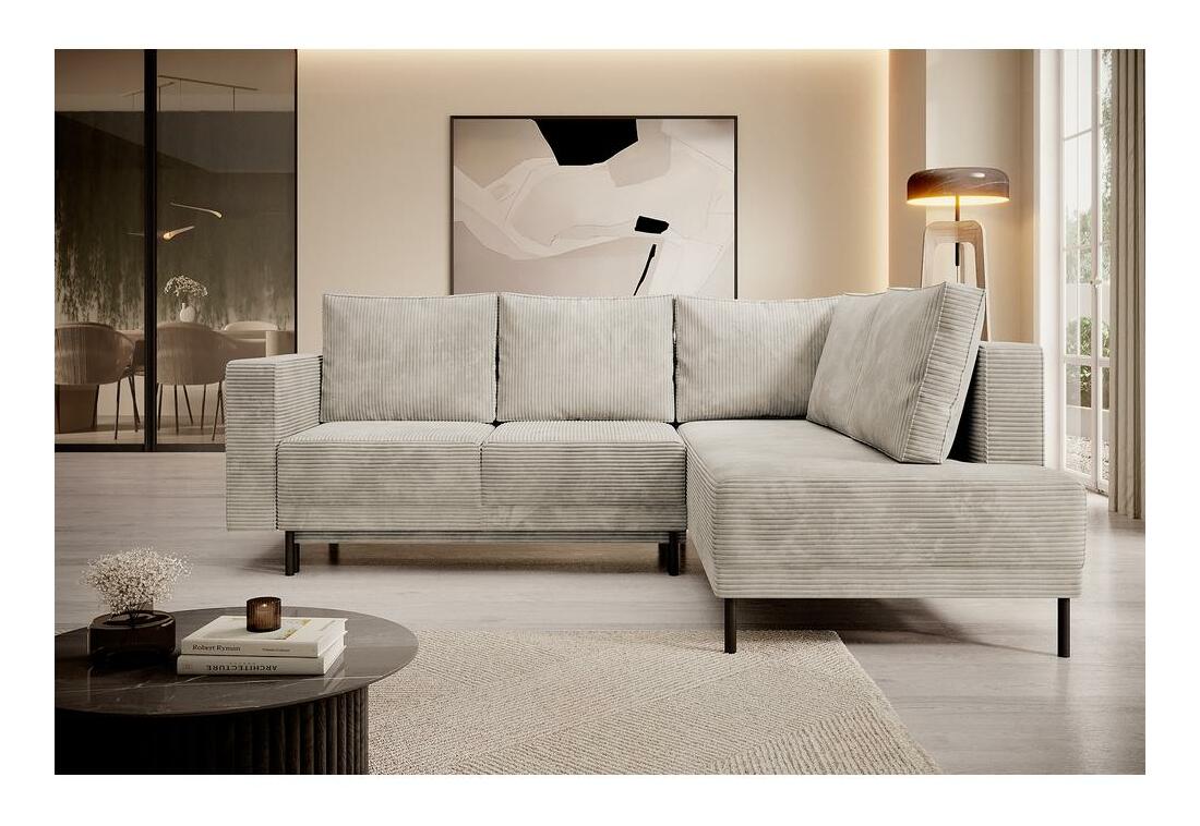 ZobrazitSníte o stylovém obývacím pokoji, kde si budete moci pohodlně odpočinout? Rohová sedačka bude hitem Rohová sedačka je tvarem se současným designem, který dokonale zapadne do každého módního interiéru. Jednoduchá, minimalistická forma, štíhlé černé nohy a měkké polštáře na opěradle - to vše činí mimořádně okouzlujícím a bude ideálním místem k odpočinku po náročném dni. Rohová sedačka je vybavena funkcí na spaní a snadno ovladatelným DL mechanismem, díky kterému nábytek rychle přeměníte na pohodlnou postel pro své hosty. disponuje také prostorným kontejnerem, do kterého můžete uložit náhradní sadu ložního prádla a jiného textilu Podrobnosti o produktu: nábytek je ve tvaru L, rohová sedačka je na pravé straně, ozdobné lemování dodává celku eleganci, praktické područky umožňují. pro pohodlné opření rukou, výška loketní opěrky: 68 cm, šířka loketní opěrky: 16 cm, nábytek čalouněný látkou Poso 02 v tmavé béžové barvě, Poso je látka ve stylu manšestru. Povrch pokrytý tlustými pruhy je příjemný na dotek. Vyznačuje se vysokou odolností proti oděru, tření a světlu.