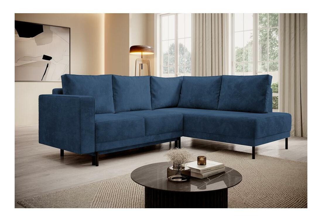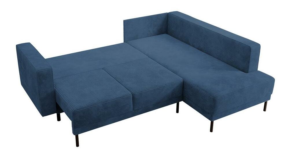ZobrazitSníte o stylovém obývacím pokoji, kde si budete moci pohodlně odpočinout? Rohová sedačka bude hitem Rohová sedačka je tvarem se současným designem, který dokonale zapadne do každého módního interiéru. Jednoduchá, minimalistická forma, štíhlé černé nohy a měkké polštáře na opěradle - to vše činí mimořádně okouzlujícím a bude ideálním místem k odpočinku po náročném dni. Rohová sedačka je vybavena funkcí na spaní a snadno ovladatelným DL mechanismem, díky kterému nábytek rychle přeměníte na pohodlnou postel pro své hosty. disponuje také prostorným kontejnerem, do kterého můžete uložit náhradní sadu ložního prádla a jiného textilu Podrobnosti o produktu: nábytek je ve tvaru L, rohová sedačka je na pravé straně, ozdobné lemování dodává celku eleganci, praktické područky umožňují. pro pohodlné opření rukou, výška loketní opěrky: 68 cm, šířka loketní opěrky: 16 cm, nábytek čalouněný látkou Poso 05 v námořnické modré, Poso je látka ve stylu manšestru. Povrch pokrytý tlustými pruhy je příjemný na dotek. Vyznačuje se vysokou odolností proti oděru, tření a světlu.
