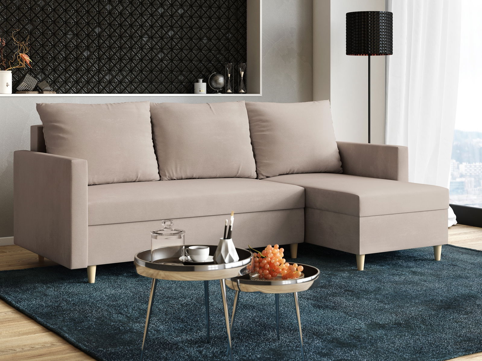 ZobrazitTato pravá verze rohové sedačky vás zve do světa pohodlí a elegance, které přidá vašemu obývacímu prostoru šmrnc. Vystavěná z kombinace dřeva a 18 mm nábytkové desky, s výplní sedáku a opěradla z bonellových pružin a pěny T 30. Tato sedačka je tak pohodlná, jak vypadá. Na rozdíl od svého levého dvojníku, tato verze je ideální pro prostory, kde je pravý roh optimální pro uspořádání. Se svým sametovým potahem, úložným prostorem v bílé barvě a dřevěnými nožičkami v naturální barvě sedačka poskytuje luxusní vzhled spolu s funkčností a komfortem.