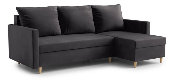 ZobrazitTato pravá verze rohové sedačky vás zve do světa pohodlí a elegance, které přidá vašemu obývacímu prostoru šmrnc. Vystavěná z kombinace dřeva a 18 mm nábytkové desky, s výplní sedáku a opěradla z bonellových pružin a pěny T 30. Tato sedačka je tak pohodlná, jak vypadá. Na rozdíl od svého levého dvojníku, tato verze je ideální pro prostory, kde je pravý roh optimální pro uspořádání. Se svým sametovým potahem, úložným prostorem v bílé barvě a dřevěnými nožičkami v naturální barvě sedačka poskytuje luxusní vzhled spolu s funkčností a komfortem.