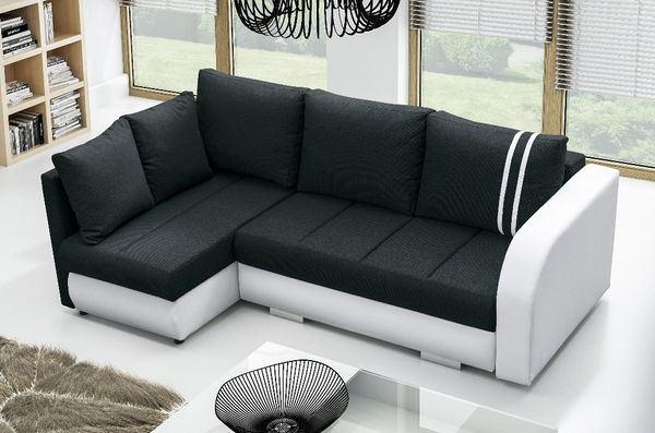Rohová sedací souprava Rubella (černá + bílá) (L)