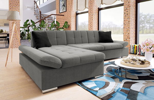 ZobrazitRohová sedací souprava Raphael s funkcí spaní je model dostupný v módních a oblíbených barvách, které dokonale ladí s jakýmkoli interiérem. Látka LUX použitá na sedadle a opěradle se vyznačuje vysokou odolností proti oděru, vyblednutí a mechu. Kromě toho se snadno udržuje v čistotě. Rohová sedací souprava Raphael s funkcí spaní se navíc vyznačuje moderním vzhledem a zajímavými řešeními. Patří k nim nastavitelná opěrka, elegantní chromové nohy a ozdobné prošívání na sedáku a opěradle. Rohová pohovka je vybavena funkcí spaní a nádobou na lůžkoviny.