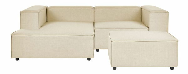 Vylepšete svůj obývací pokoj a udělejte z něj stylovou a dobře uspořádanou místnost pomocí této moderní pohovky. Má velmi kvalitní a odolné čalounění z polyesterového lnu. Díky nohám ze syntetického materiálu je navíc stabilní. Pohovka sestává ze dvou modulů a taburetu. Všechny části lze spojit a vytvořit sedací sestavu nebo je použít samostatně. Tato pohovka nabízí funkčnost a nadčasový styl a díky elegantnímu designu a jednoduchému provedení v neutrální barvě dokonale doplní interiér zařízený v moderním a boho stylu.