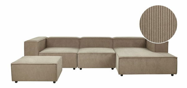 Rohová sedací souprava s taburetkou Afrika (hnědý manšestr) (L)
