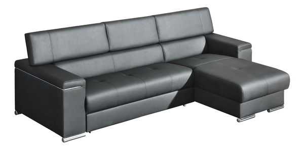 Rohová sedačka Sander z černé ekokůže je vhodná nejen do moderní obývacího pokoje ale i do kanceláří a pod. Příjemným zpestřením černé je stříbrná barva nožiček a detailů na opěrkách. Sedačka s úložným prostorem je vhodná i na spaní. Dostupná v levém i pravém provedení. Sezení je pružinové.