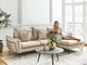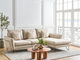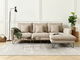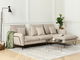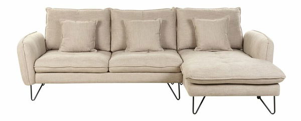 Vylepšete svůj obývací prostor pomocí této luxusní rohové pohovky, která dokonale spojuje moderní styl a komfort. Díky hrubému a na dotek příjemnému žinylkovému čalounění v béžové barvě a nastavitelnému opěradlu je velmi pohodlná. Každou část opěradla lze samostatně nastavit, takže je dokonalým místem k relaxaci. Součástí pohovky jsou extra polštáře. Černé leštěné nohy zaručují stabilitu celé konstrukce a podtrhují moderní vzhled nábytku.