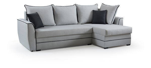 Stylová rohová sedačka Silvam Vám jistě padne do oka. Charakter jí přidávají dekorativní lemy těla ale i opěrkovými polštáři které skvěle kontrastují se zbytkem sedačky. Tento model stojí na černých nožičkách a obsahuje velké odkládací místo.