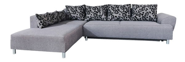 Moderní rohová prostorná rozkládací pohovka vybavena úložným prostorem a stojící na chromových nožkách. Polštáře jsou v ceně sedačky. Dodávána se sendvičovou matrací a v levém provedení.