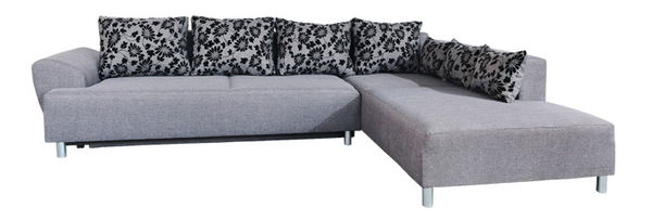 Moderní rohová prostorná rozkládací pohovka vybavena úložným prostorem a stojící na chromových nožkách. Polštáře ve dvou rozměrech jsou v ceně pohovky. Dodávána se sendvičovou matrací a v pravém provedení.