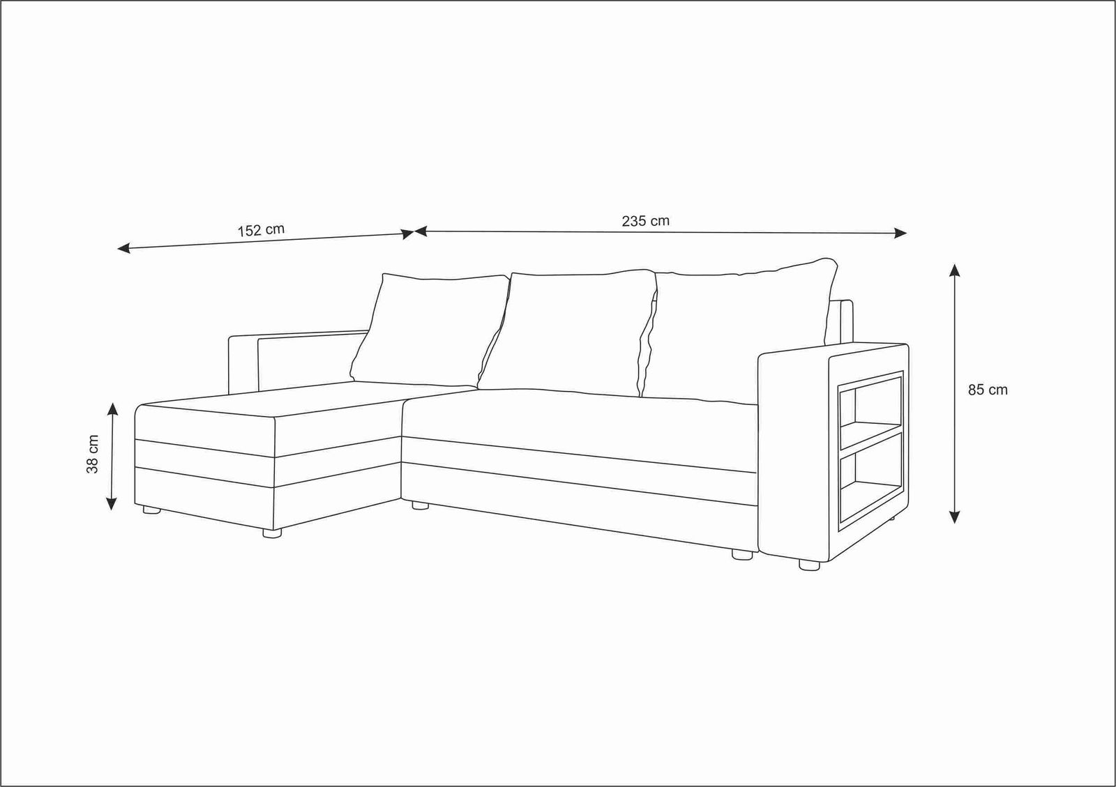 ZobrazitStylová rohová sedací souprava Simpey se může stát perfektní součástí i vašeho obývacího pokoje. Můžete ji umístit kdekoli díky pěkně vypracovaným zádům sedací soupravy a na boku soupravy se nacházejí prkatické poličky. Dá se jednoduše rozložit čímž vznikne plocha na spaní. K sedací soupravě jsou tři velké polštáře se zipem, což usnadňuje jejich údržbu.