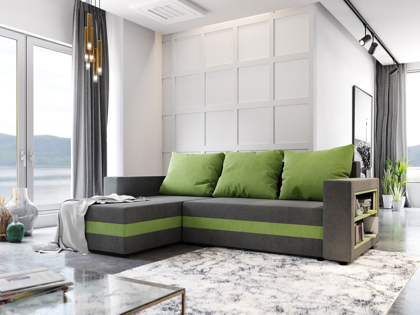 Rohová sedací souprava Simpney (šedá + zelená) (L)