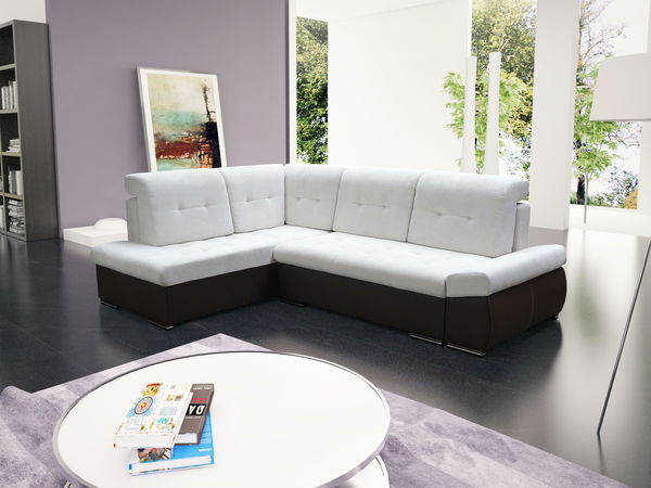 Rohová sedací souprava Sinea (bílá + tmavě hnědá) (L)