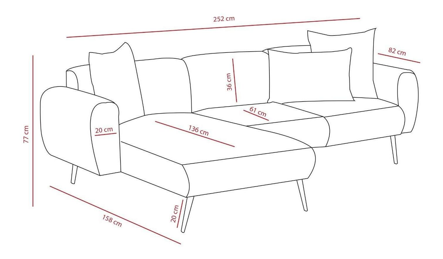 Šířka: 252 cm Výška: 77 cm Hloubka: 82 cm