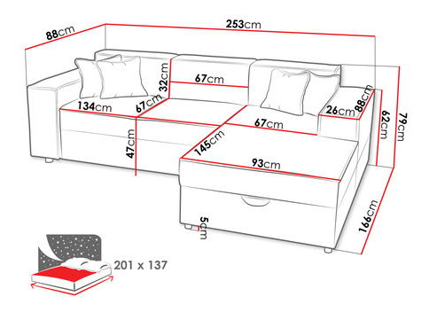 Rohová sedačka je ideální volbou pro ty, kteří hledají pohodlí a styl. Rohová sedačka typu Sokoz L s funkcí spaní je dokonalým řešením do obývacího pokoje. Široká škála barev vám umožní dokonale přizpůsobit model preferencím. Moderní sedačka nabízí i funkci na spaní. organizaci se vždy hodí!Dopřejte si stylový a pohodlný kus nábytku už teď! rám: borové dřevo + 15 mm silná dřevotříska, sedák: 12 cm silná pěna T28 + vlnitá pružina typu A, opěradlo: 6 cm silná pěna T23, rohová pohovka je rozkládací, automatická rozkládací jednotka typu delfín, funkce spaní, nádoba na lůžkoviny, nohy napevno, polštáře vyplněné silikonovými kuličkami, polštáře nejsou na zip, polštáře jsou součástí balení, rohová pohovka je volně stojící (opěradlo čalouněné látkou) Záruka: 24 měsíců