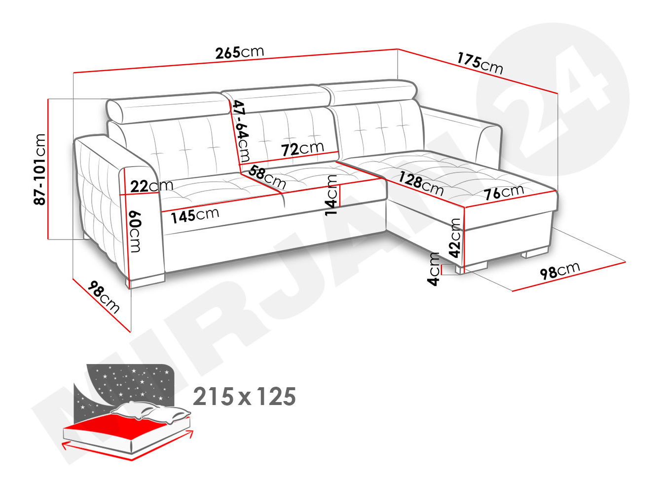 Rohová sedací souprava je ideální volbou pro ty, kteří hledají pohodlí a styl. Rohová sedačka s opěrkami hlavy Sensei poskytuje pohodlný odpočinek po náročném dni. Rozměry: délka: 265cm šířka: 175cm výška: 87-101cm rozměr rozložené plochy: 215x125cm Barvy: vyberte z dostupných potahů zde Výběr strany: levá nebo pravá Vyrobeno: dřevěný rám + surová dřevotřísková deska, polyuretanová pěna vlnitá zadní strana čalouněná látkou - volně stojící, Záruční doba: 24 měsíců