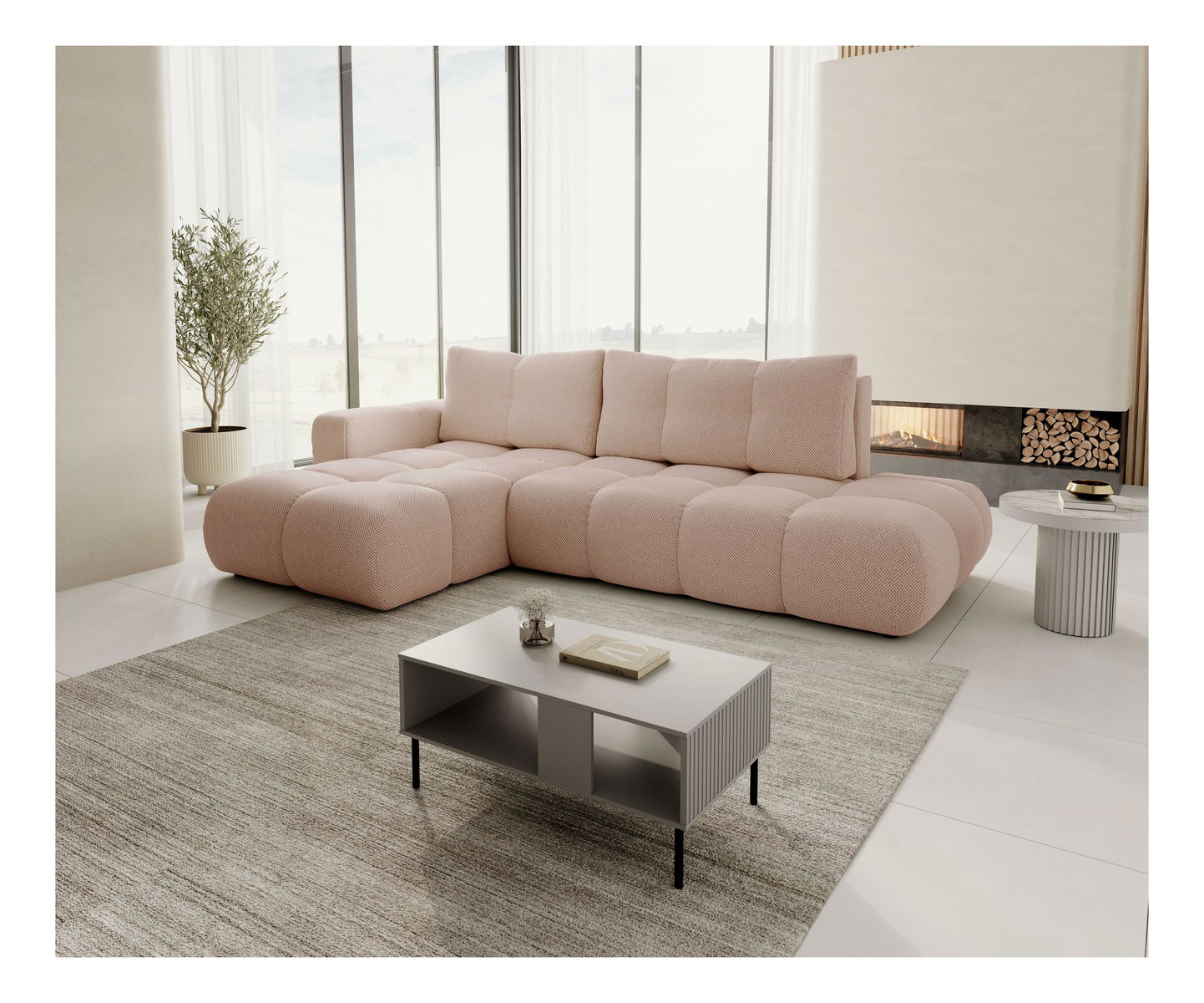 ZobrazitRohová sedačka s konstrukcí z borovicového dřeva a dřevotřísky je navržena pro pevnost a trvanlivost. Sedák je vyroben z PUR pěny T-3042 a T-2542, což poskytuje maximální pohodlí. Sedačka je rozkládací s plochou na spaní 140 x 215 cm. Výška sezení je 43,5 cm, hloubka sezení 58 cm a výška područky 58 cm. Sedačka má úložný prostor a záda potažená stejnou látkou, což zajišťuje jednotný vzhled. Nemá nastavitelné opěrky hlavy ani područky. Nožičky jsou plastové o výšce 3,5 cm. Typ rozkládání je DL automat, což umožňuje snadné rozkládání.