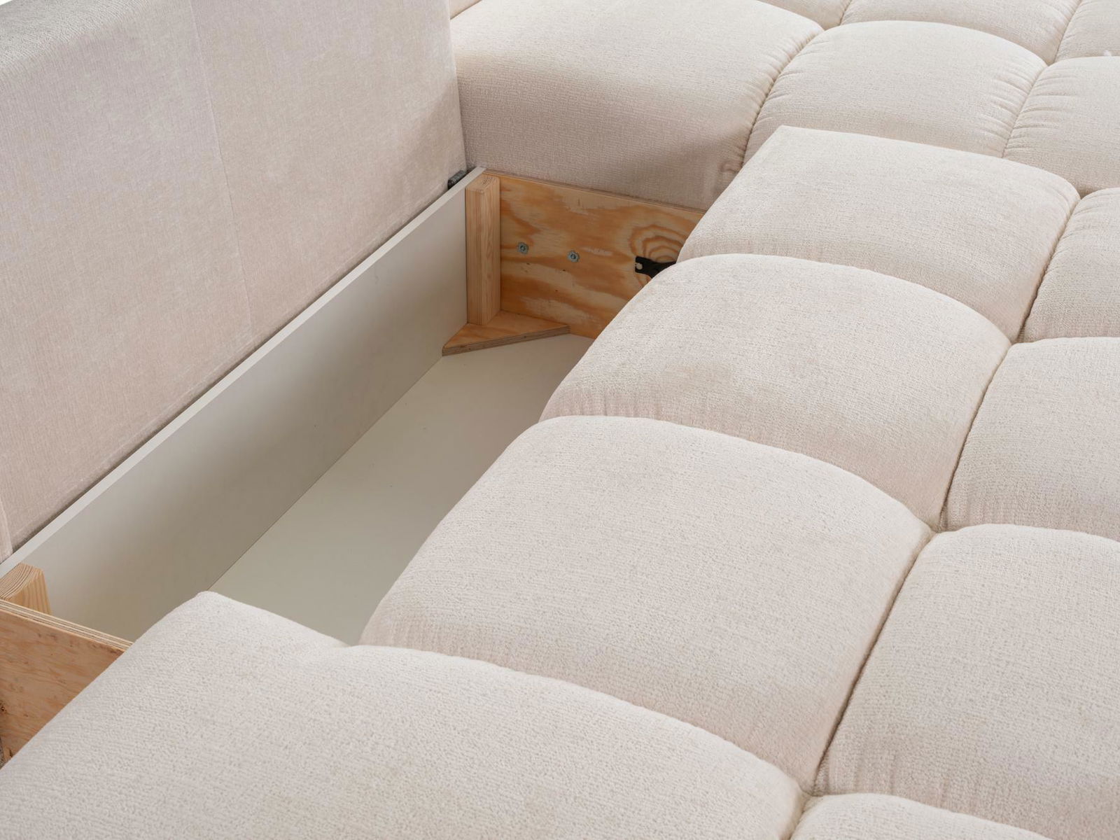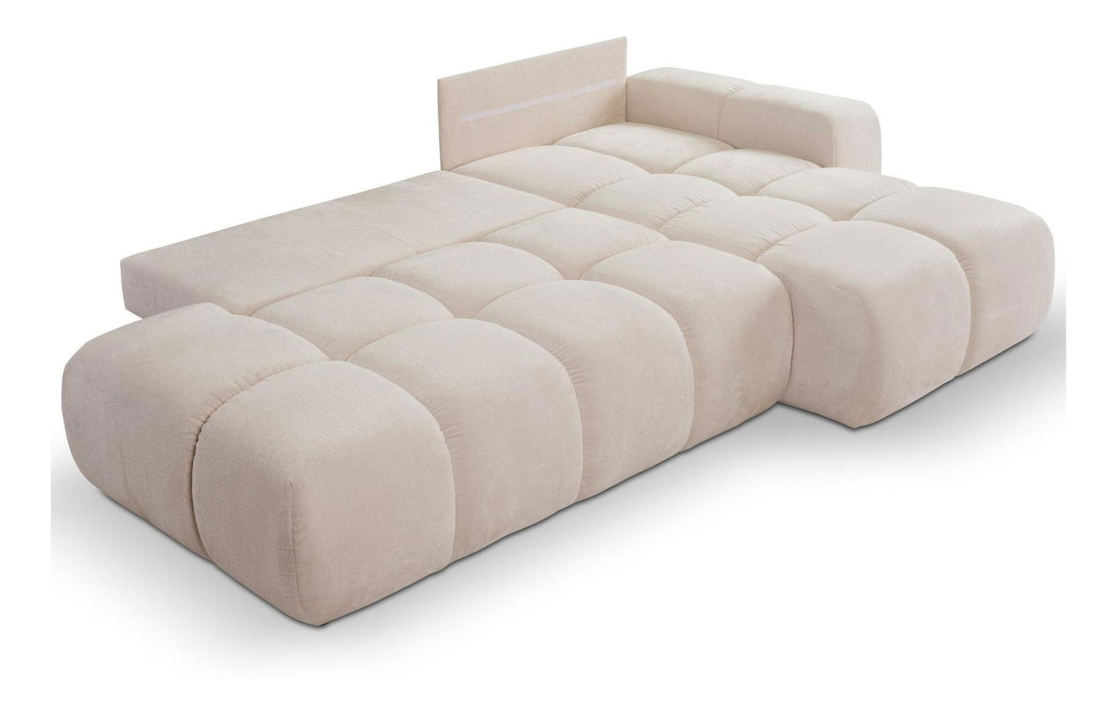 ZobrazitRohová sedačka s konstrukcí z borovicového dřeva a dřevotřísky je navržena pro pevnost a trvanlivost. Sedák je vyroben z PUR pěny T-3042 a T-2542, což poskytuje maximální pohodlí. Sedačka je rozkládací s plochou na spaní 140 x 215 cm. Výška sezení je 43,5 cm, hloubka sezení 58 cm a výška područky 58 cm. Sedačka má úložný prostor a záda potažená stejnou látkou, což zajišťuje jednotný vzhled. Nemá nastavitelné opěrky hlavy ani područky. Nožičky jsou plastové o výšce 3,5 cm. Typ rozkládání je DL automat, což umožňuje snadné rozkládání.