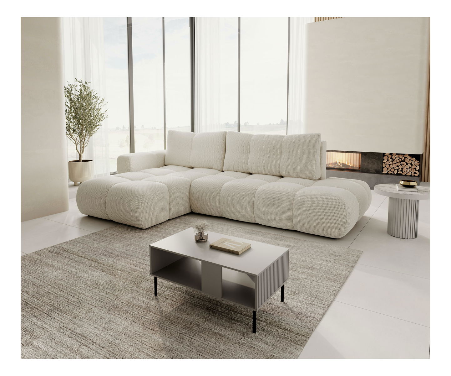 ZobrazitRohová sedačka s konstrukcí z borovicového dřeva a dřevotřísky je navržena pro pevnost a trvanlivost. Sedák je vyroben z PUR pěny T-3042 a T-2542, což poskytuje maximální pohodlí. Sedačka je rozkládací s plochou na spaní 140 x 215 cm. Výška sezení je 43,5 cm, hloubka sezení 58 cm a výška područky 58 cm. Sedačka má úložný prostor a záda potažená stejnou látkou, což zajišťuje jednotný vzhled. Nemá nastavitelné opěrky hlavy ani područky. Nožičky jsou plastové o výšce 3,5 cm. Typ rozkládání je DL automat, což umožňuje snadné rozkládání.