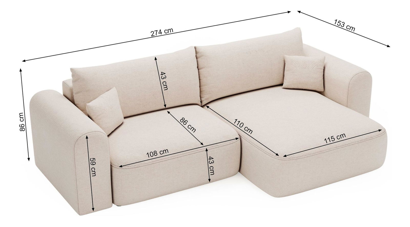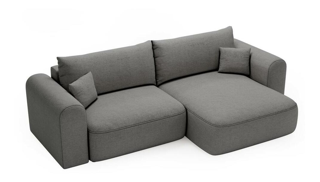 ZobrazitHledáte jednoduchou rohovou sedačku, která se hodí k současným trendům interiérového designu? Vaše hledání skončilo! Představujeme stylovou rohovou sedačku, kterou si určitě zamilujete. Rohová sedačka je výbornou volbou pro lidi, kteří hledají stylový a funkční kus nábytku, který se bude skvěle hodit do moderních interiérů a minimalistických aranžmá. Tato jedinečná rohová pohovka se vyznačuje jednoduchým kulatým tvarem, který jí dodává moderní a elegantní vzhled. má funkci na spaní, díky čemuž je nejen estetickým doplňkem obývacího pokoje, ale také praktickým řešením pro hosty nebo lidi, kteří upřednostňují spánek na pohovce. Díky jednoduchému rozkládacímu mechanismu DL lze rychle změnit na pohodlnou postel. Čalouněný opěradlo rohové sedačky je dalším detailem, díky kterému tento kus nábytku vypadá skvěle z každé strany. Dá se volně umístit kdekoli v místnosti, bez obav o estetiku. Rohová sedačka je vybavena i praktickým zásobníkem na ložní prádlo, který pomáhá udržovat pořádek a poskytuje další prostor pro uložení přikrývek, polštářů a ložního prádla. Vysoký komfort používání rohové sedačky zajišťují kvalitní materiály Sedák je vyplněn polyuretanu pěnou T30, která zajišťuje pohodlí a elasticitu. Vlnové pružiny v sedadle navíc poskytují přiměřenou podporu a pohodlí při používání po dlouhé hodiny. Hledáte rohovou sedačku se strukturovanější látkou? Nezapomeňte si prohlédnout v látce Legacy Podrobnosti o produktu: Rohová sedačka ve tvaru L, univerzální kus nábytku, volně stojící model, tj. s čalouněným opěradlem, funkce rozkladu rohové sedačky typu DL umožňuje rozložení rohové sedačky! velmi rychle, standardně praktický kontejner na ložní prádlo, k rohové sedačce jsou součástí dekorační polštáře, nábytek je čalouněný látkou Storm 97. v tmavě šedé barvě,