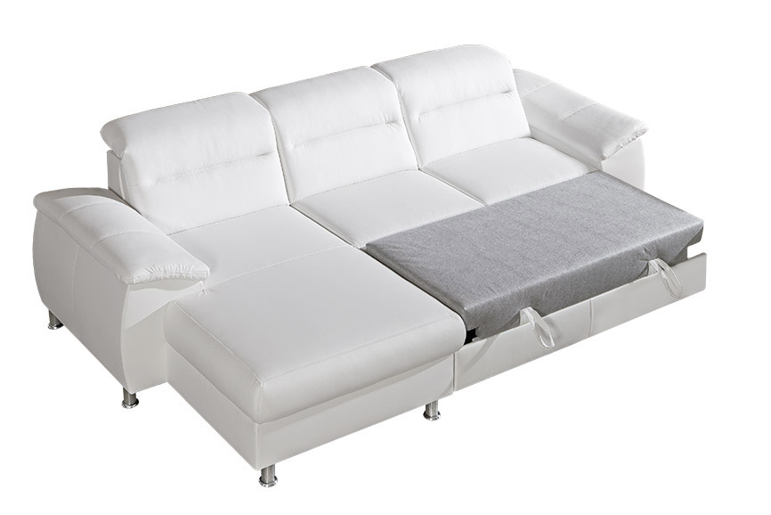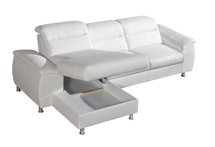 Rohová sedačka ve tvaru L je vhodná do prostorného ale i menší obýváku. Díky bílé ekokůži se místnost rozjasní a navíc působí tento materiál vskutku elegantně. Pohodlná sedačka Spirea se dá i rozložit a využít jako postel pro hosty. Úložné prostory můžete využít k odkládání přikrývek, polštářů, ložního prádla apod. Opěrka hlavy je polohovatelná.