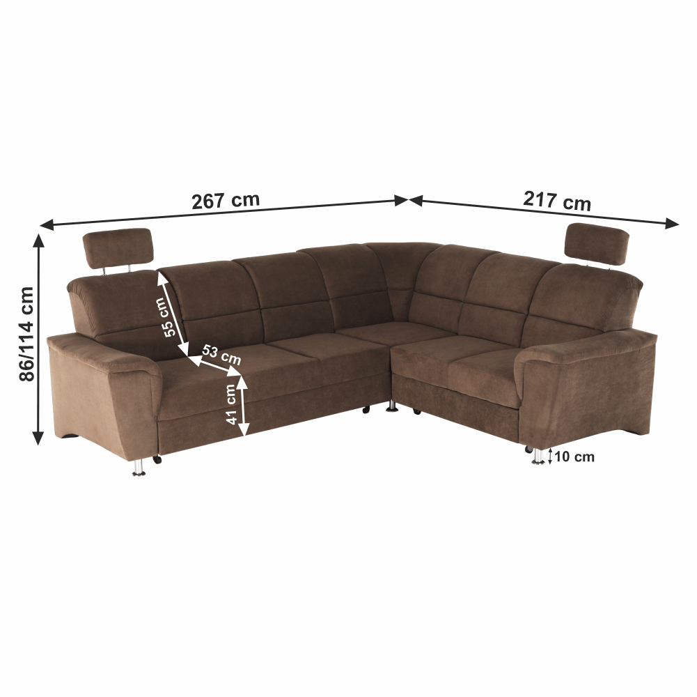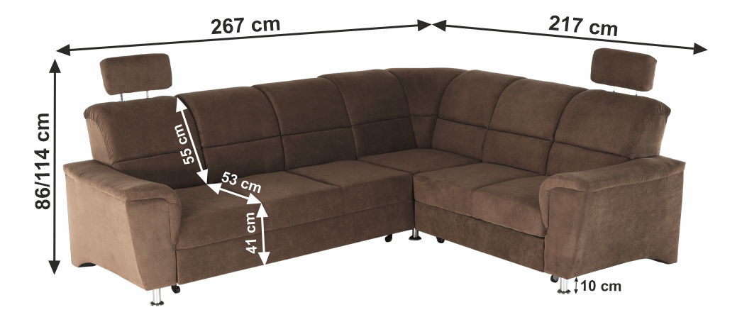 Rohová sedačka Stan (hnědá) (P) o rozměrech 267x217x86/114 cm a plochou na spaní 118x200 cm je skvělou volbou pro váš obývací pokoj. Tato sedačka má výšku sedu 41 cm a hloubku sedu 53 cm, přičemž výška zádové opěrky je 55 cm a výška spodního prostoru od podlahy je 10 cm. Sedačka je vyráběna z kvalitní látky s oděruodolností textilie dle testu Martindale až 72 000 oděrů. Sedačka je vybavena pružinou falista/pur pěnou a manuálním systémem rozkladu. Kromě toho, sedačka má také polohovací opěrky hlavy, kovové nožičky s povrchovou úpravou chrom a dodává se v demontu. Sedačka Stan je vhodná pro jednu osobu s maximální nosností 90 kg a je ideální pro ty, kteří hledají rohovou sedačku s úložným prostorem a celočalouněnou konstrukcí.