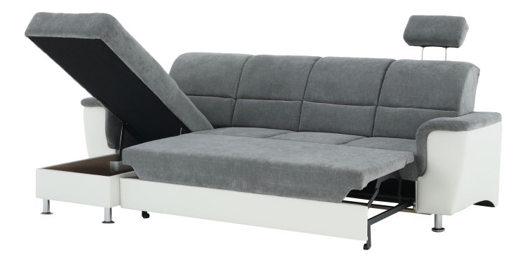 Rohová sedačka Stan malá (bílá + šedá) (L) je vynikající volba pro ty, kteří hledají komfortní a elegantní nábytek. Tato sedačka má moderní design s šedým látka a bílou ekokůží, které se pěkně doplňují. Materiál sedačky je vyroben z kvalitní ekokůže a textilie Matrix, které mají vysokou odolnost vůči oděru. Kovové nožičky s povrchovou úpravou chrom přidávají sedačce stylový vzhled. Sedačka má manuální systém rozkladu a dodává se v demontu. Rozměry sedačky jsou 260x168x86/106 cm, plocha na spaní je 116x200 cm, výška sedu je 41 cm a hloubka sedu je 53 cm, výška spodního prostoru od podlahy je 10 cm. Sedačka je vyrobena s nosností na osobu do 90 kg. Buďte moderní a elegantní s touto rohovou sedačkou Stan malá (bílá + šedá) (L).
