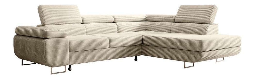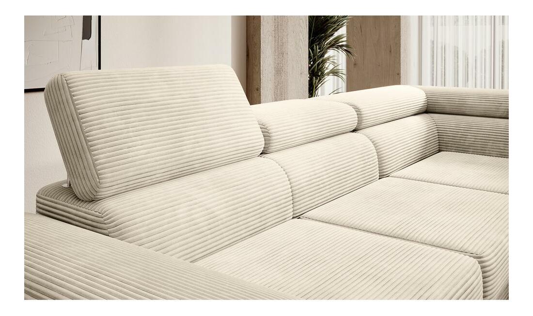 ZobrazitSníte o prostorné rohové sedačce, která vám umožní relaxovat po dlouhém pracovním dni? S radostí vám představujeme rohovou pohovku Obývací pokoj je místem setkávání rodiny a přátel, dlouhých rozhrů při teplém čaji, večerního sledování filmů nebo společenských her – to vše na naší jedinečné rohové sedačce. Čas strávený tam bude jistě příjemným odpočinkem a chvílí relaxu. Nabízený model je spojením moderní formy a funkčnosti. Módní design výrobku snadno zapadne do současných interiérů, díky čemuž získáte stylový prostor. Kvé nohy v subtilním tvaru dodávají šarm. Čalounění kvalitní látkou navíc činí nábytek odolným a oděruvzdorným, díky čemuž bude vypadat v perfektním tvaru po celá léta. Aby byla rohová pohovka co nejpraktičtější, ve spodní části nábytku se nachází kontejner, do kterého se vejde další lůžkoviny, přikrývky, oblečení nebo jiné textilie. Fantastickou možností této rohové sedačky je funkce spánku, kdy se prodlouží večerní setkání vašich přátel, nikdy nebude problém přespat přes noc a díky pohodlnému rozkládacímu mechanismu delfín ji rozložíte rychle a efektivně kdykoli. čas počkejte, objednejte ještě dnes Podrobnosti o produktu: Rohová sedačka ve tvaru L, pravý nábytek, tři polohovatelné opěrky hlavy (rohová opěrka hlavy není polohovatelná), volně stojící model, tj. s čalouněným opěradlem, funkce Dolphin sleep umožňuje! rohovou sedačku rozložte velmi rychle, kontejner na postel ve standardu, stylové, jedinečné nohy, nábytek čalouněný látkou Poso 105 ve světle béžové barvě, Poso je nábytková látka ve stylu manšestru. Jeho povrch pokrývají tlusté, na dotek příjemné pruhy, které mu dodávají mírně retro charakter. Díky tomu bude materiál vypadat hezky na salonku, polštářích a jiných dekoračních prvcích. Poso se může pochlubit vysokou odolností proti oděru a tření. Nevybledne vlivem světla.