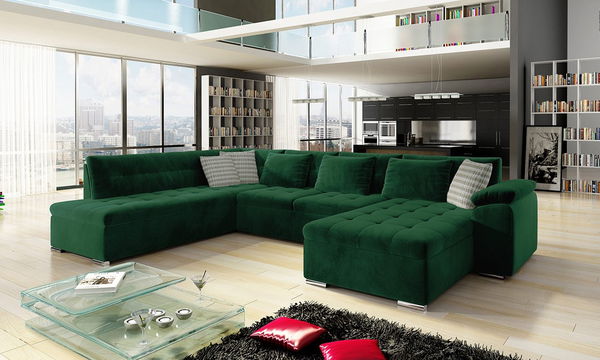 Rohová rozkládací sedací souprava Talia je model, který si získal tisíce klientů v Evropě. Oddechová sedačka ve tvaru "U" je čalouněna i ze zadní strany sedací soupravy, a proto je možné ji umístit kdekoli v obývacím pokoji. K tomuto modelu nabízíme spoustu barevných provedení. Speciální pozornost jsme věnovali elegantním nohám a široké loketní opěrce, což výrazně zvyšuje pohodlí při používání sedačky. Půvabnost vzhledu jí dodá vyrobené prošití na sedisku i na opěradle. Navíc naše rozkládací sedací souprava v soupravě má polštáře, které jsou opatřeny zipem, který usnadňuje její udržování. Konstrukce sedačky je z dřevěného rámu - roštu s prvky z dřevotřískové desky. V sedisku při výrobě byly použity vlnité pružiny. Další její výhodou je úložný prostor.