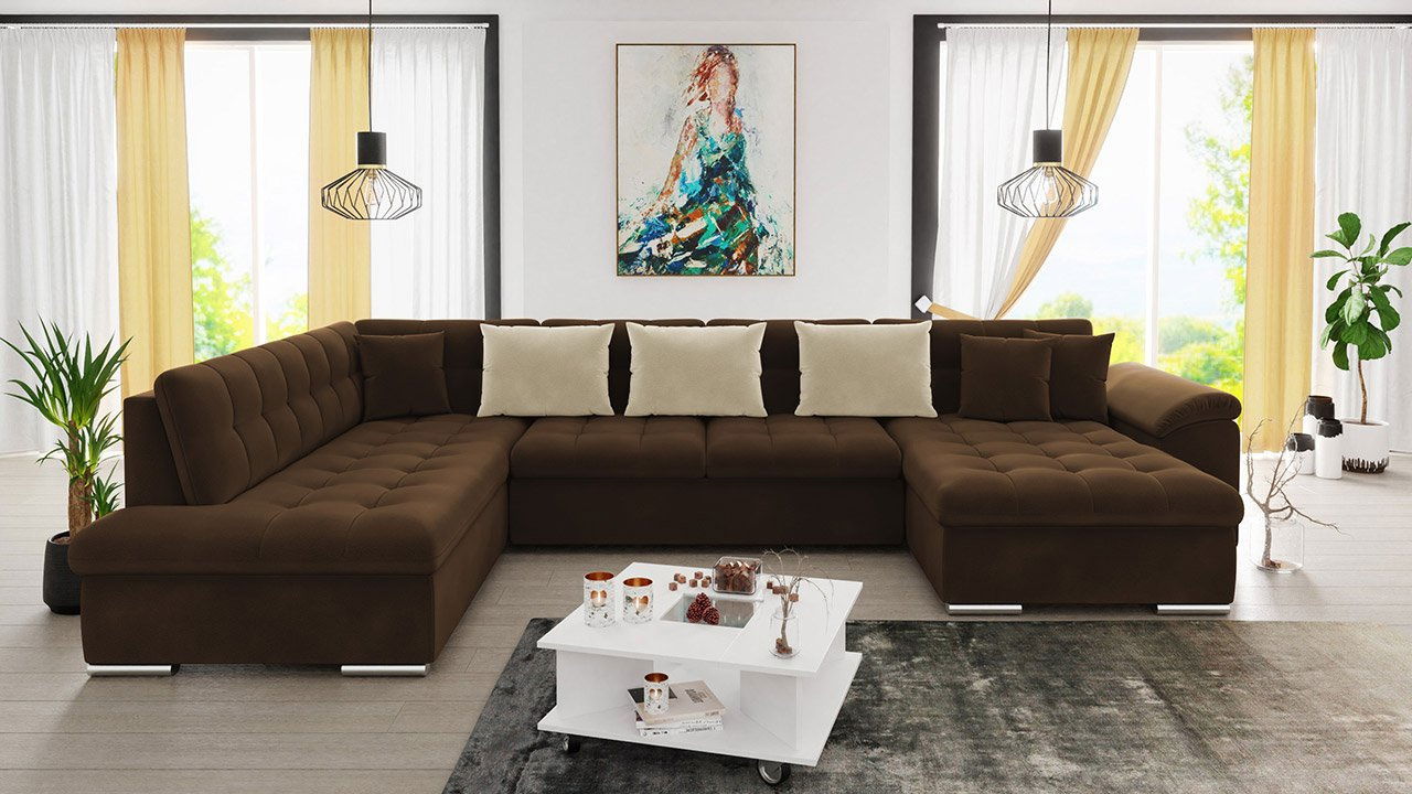ZobrazitRohová sedací souprava je ideální volbou pro ty, kteří hledají pohodlí a styl. Rohová rozkládací sedací souprava Tony Bis je model, který si získal tisíce klientů v Evropě. Oddechová sedačka ve tvaru "U" je čalouněna i ze zadní strany sedací soupravy, a proto je možné ji umístit kdekoli v obývacím pokoji. K tomuto modelu nabízíme spoustu barevných provedení. Speciální pozornost jsme věnovali elegantním nohám a široké loketní opěrce, což výrazně zvyšuje pohodlí při používání sedačky. Půvabnost vzhledu jí dodá vyrobené prošití na sedisku i na opěradle. Navíc naše rozkládací sedací souprava v soupravě má polštáře, které jsou opatřeny zipem, který usnadňuje její udržování. Konstrukce sedačky je z dřevěného rámu - roštu s prvky z dřevotřískové desky. V sedisku při výrobě byly použity vlnité pružiny. Další její výhodou je úložný prostor. Rozměry: délka: 348 cm šířka: 205 cm výška: 76 cm rozměr rozložené plochy: 290x125 cm rozměr úložného prostoru: délka: 147 cm šířka: 85 cm výška: 23 cm Výběr strany: levá nebo pravá Provedení: dřevěný rám + dřevotříska, vlnitá rozkládací rohová pohovka, funkce spaní, nádoba na lůžkoviny, polštáře v ceně, polštáře na zip, volně stojící rohová pohovka (zadní část čalouněná látkou) Záruční doba: 24 měsíců