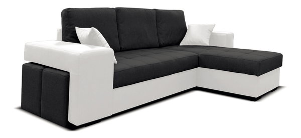Luxusní rohová sedačka působí moderně a je velmi praktická. Určitě si najde vhodné místo ve Vašem obývacím pokoji. Jednoduchým pohybem ji rozložíte, čímž vznikne velká spací plocha. Pokud Vám přijde návštěva a budete ji chtít usadit, pod opěrkami na ruce jsou ukryty praktické taburetky. Je celočalouněná koženkou a látkou. Na výběr máte ze tří barevných provedení.