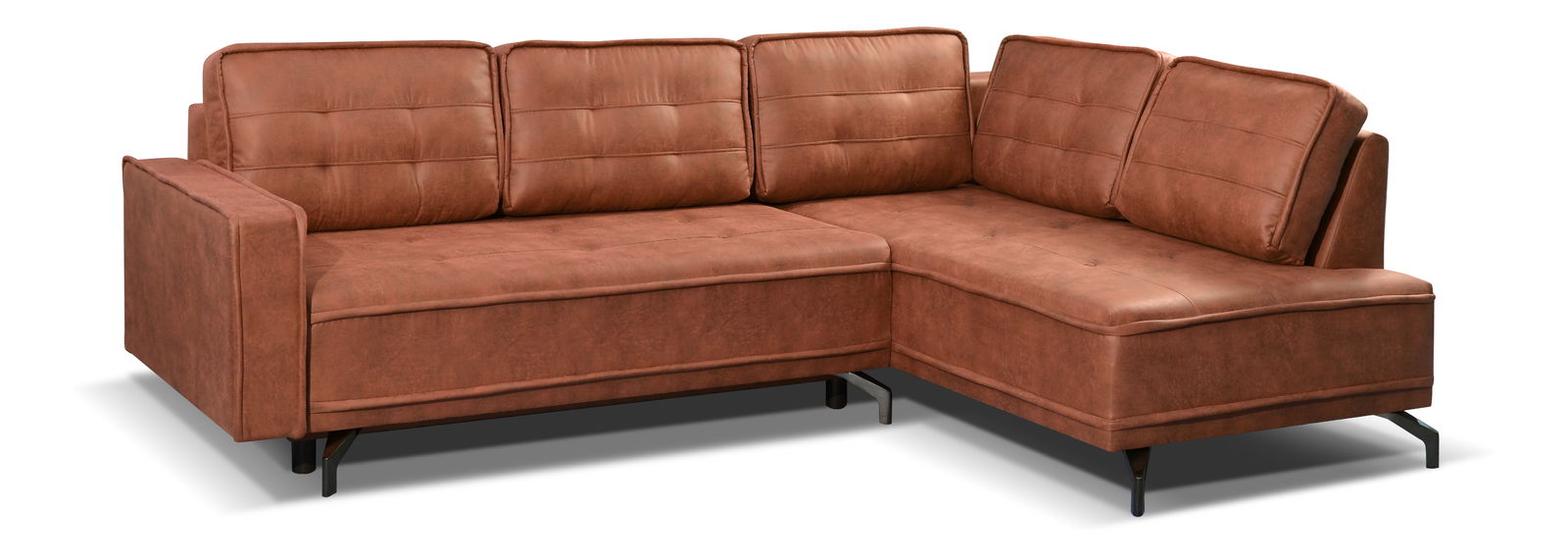 ZobrazitRohová sedačka Tanore (oranžová) (P) o výšce 89 cm a hloubce 180 cm je skvělou volbou pro ty, co hledají elegantní a pohodlný nábytek. Tato prošívaná sedačka má opěradlové polštáře a sedací části, které působí velmi elegantně. Kovové nohy zajišťují stabilní oporu. Sedačku lze snadno rozložit a vytvořit plochu na spaní. Kromě toho má také úložný prostor na ložní prádlo a jiné doplňky. Konstrukce sedačky je vyrobena z nábytkové desky a masivního dřeva. Sedací část obsahuje falisté pružiny a vysokoelastickou pěnu T30. Sedačka má typ rozkladu DL, výšku sedu 44 cm, hloubku sedu 56 cm a výšku opěradla 44 cm. Nohy jsou také součástí sedačky. Rozměry plochy na spaní jsou 216x120 cm. K montáži kovových nohou je zapotřebí nářadí. Sedačka má také ozdobné šití a dekorativní prvky v podobě knoflíků.