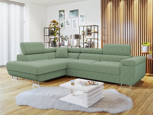 Rohová sedací souprava je ideální volbou pro ty, kteří hledají pohodlí a styl. Torezio je jedinečná rohová pohovka s funkcí spaní. Ideální k relaxaci před televizí s celou rodinou. Měl jste náročný den? Ideální rozměry vám umožní dlouho si zdřímnout na pohodlném odpočinku. Tato varianta se vyznačuje krásnými barvami a texturami. Zabalený do materiálu manšestrového typu dodá interiéru příjemnou a elegantní atmosféru. Model je rozkládací, takže získáte další prostor pro přenocování hostů. Kromě toho má prostornou nádobu na lůžkoviny. Je v ní místo pro přikrývky, polštáře a další předměty hodné uložení. Nastavitelné opěrky hlavy vám umožní správně sedět při čtení knihy nebo procházení sociálních sítí. Rohová pohovka na nožičkách je volně stojící. Své funkce bude dokonale plnit uprostřed obývacího pokoje. Bude vypadat úžasně a v místnosti vytvoří útulnou atmosféru. Tento stylový a vysoce funkční kus nábytku se rád zdomácní ve vaší domácnosti! Rozměry: délka: 274 cm, šířka: 203 cm, výška: 70-87 cm, plocha na spaní: 198 x 125 cm, Rozměry úložného prostoru: délka: 173 cm, šířka: 92 cm, výška: 17 cm Rohová strana: levá nebo pravá Provedení: Konstrukce oves + pěna T 2544 tloušťky 10 cm, konstrukce opěradla: dřevěný rám + vlnitá pružina + plst + oves + pěna T 2544 o tloušťce 8 cm, rohová pohovka je rozkládací, má funkci spaní, úložný prostor nastavitelné opěrky hlavy, 1 část z plastu, čalouněné opěradlo napevno, volně stojící rohová jednotka (opěradlo čalouněné látkou) Záruka: 24 měsíců