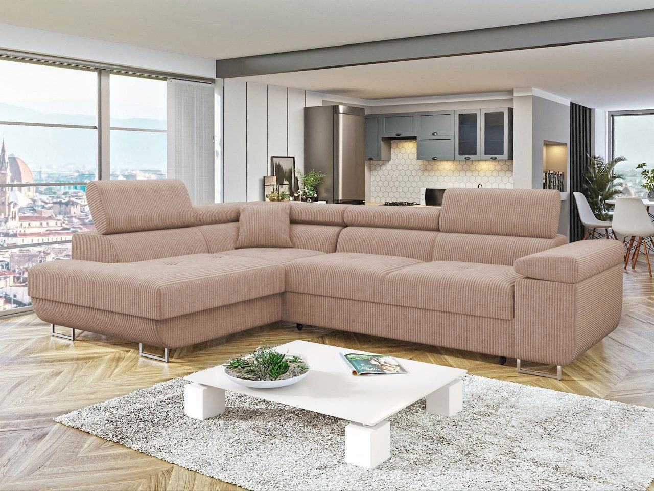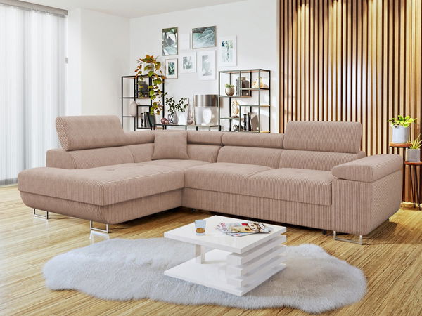 Rohová sedací souprava je ideální volbou pro ty, kteří hledají pohodlí a styl. Torezio je jedinečná rohová pohovka s funkcí spaní. Ideální k relaxaci před televizí s celou rodinou. Měl jste náročný den? Ideální rozměry vám umožní dlouho si zdřímnout na pohodlném odpočinku. Tato varianta se vyznačuje krásnými barvami a texturami. Zabalený do materiálu manšestrového typu dodá interiéru příjemnou a elegantní atmosféru. Model je rozkládací, takže získáte další prostor pro přenocování hostů. Kromě toho má prostornou nádobu na lůžkoviny. Je v ní místo pro přikrývky, polštáře a další předměty hodné uložení. Nastavitelné opěrky hlavy vám umožní správně sedět při čtení knihy nebo procházení sociálních sítí. Rohová pohovka na nožičkách je volně stojící. Své funkce bude dokonale plnit uprostřed obývacího pokoje. Bude vypadat úžasně a v místnosti vytvoří útulnou atmosféru. Tento stylový a vysoce funkční kus nábytku se rád zdomácní ve vaší domácnosti! Rozměry: délka: 274 cm, šířka: 203 cm, výška: 70-87 cm, plocha na spaní: 198 x 125 cm, Rozměry úložného prostoru: délka: 173 cm, šířka: 92 cm, výška: 17 cm Rohová strana: levá nebo pravá Provedení: Konstrukce oves + pěna T 2544 tloušťky 10 cm, konstrukce opěradla: dřevěný rám + vlnitá pružina + plst + oves + pěna T 2544 o tloušťce 8 cm, rohová pohovka je rozkládací, má funkci spaní, úložný prostor nastavitelné opěrky hlavy, 1 část z plastu, čalouněné opěradlo napevno, volně stojící rohová jednotka (opěradlo čalouněné látkou) Záruka: 24 měsíců