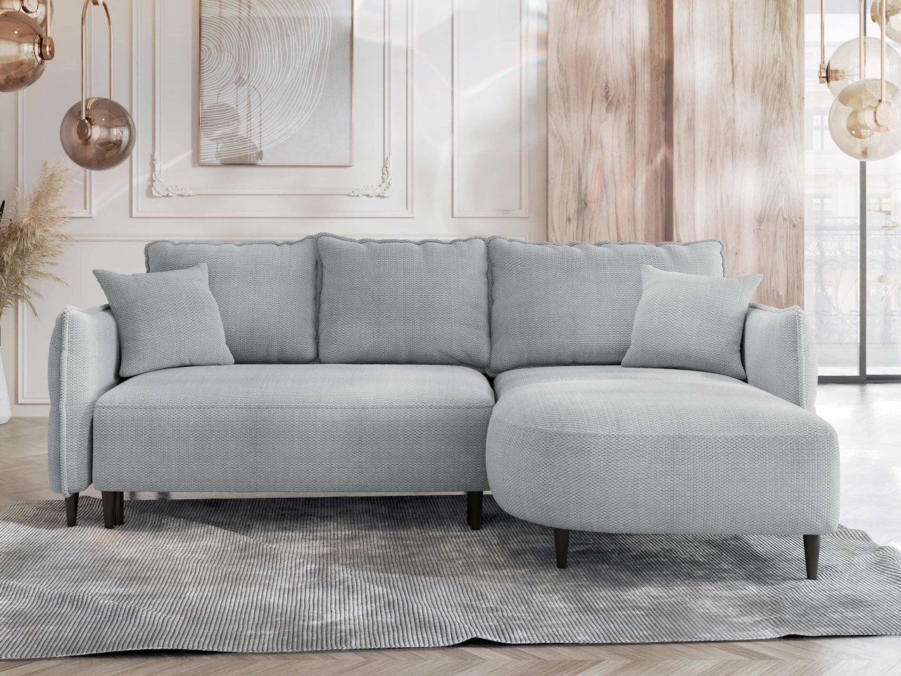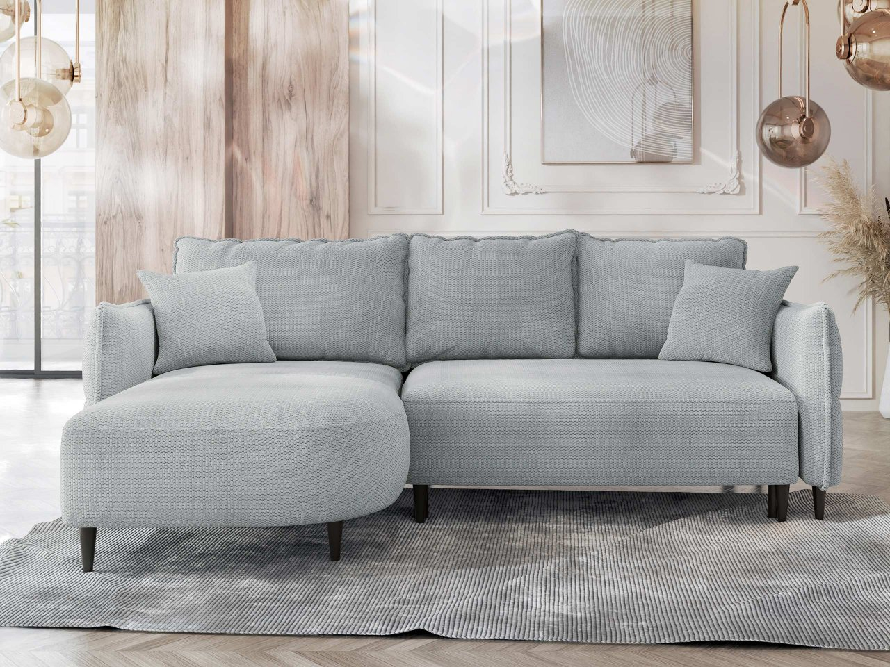 ZobrazitRohová rozkládací pohovka je ideální volbou pro ty, kteří hledají pohodlí a styl. Moderní vzhled rohové rozkládací pohovky Torezio zvýrazní skvělý styl zařízení vašeho obývacího pokoje. Barvy čalounění rohové sedačky dokonale ladí s jakoukoli dekorací stěny a vzorem podlahy. Módní odstíny čalounění v kombinaci s chromovými nohami navíc zdůrazňují charakter interiéru a ostatních kusů nábytku. Pohovka ve tvaru písmene L výborně pasuje ke kulatému konferenčnímu stolku, jakož ik obdélníkovému konferenčnímu stolku. Toto harmonické duo je ideální do pokoje pro hosty. Poskytuje spoustu prostoru k sezení a vytváří ideální podmínky pro setkání s přáteli. Promyšlený design a doplňky jsou zodpovědné za zvýšenou kvalitu odpočinku. Polohovatelné opěrky hlavy patří budou oblíbené u celé rodiny. Lze je přizpůsobit tvaru těla dítěte, ale i dospělého. Výhodou nábytku je také rozkládací funkce. V rozloženém stavu poskytuje komfortní podmínky pro každodenní spánek. Prostorný úložný prostor na ložní prádlo řeší starosti s ukládáním polštářů a peřin. Pomůže vám s udržováním pořádku v obýváku a poskytuje i další prostor pro sezónní oblečení a jiné vzácně používané věci. Rozměry: délka: 274 cm, šířka: 203 cm, výška: 70-87 cm, plocha na spaní: 198 x 125 cm, rozměry úložného prostoru: délka: 173 cm, šířka: 92 cm, výška: 17 cm Strana sedačky: levá nebo pravá Provedení: filc + vata + T 2544 pěna tloušťka 10 cm, konstrukce opěradla: dřevěný rám + vlnitá pružina + filc + vata + T 2544 pěna, tloušťka 8 cm, rozkládací funkce, úložný prostor, nastavitelné opěrky hlavy, 9 cm vysoké nohy, přední část pevně fixovaná, volně stojící sedačka (zadní strana potažená látkou) Možnost zakoupení pasujících produktů : Konferenční stolek Komoso Regál Runoya I Záruka : 24 měsíců