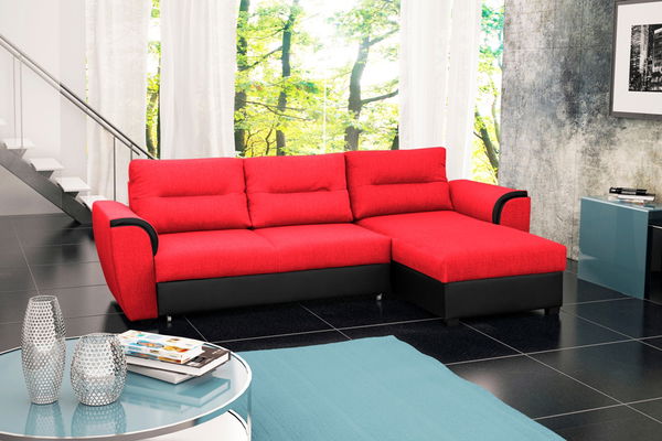 - Rohová sedací souprava Thomas (červená + černá) (P)