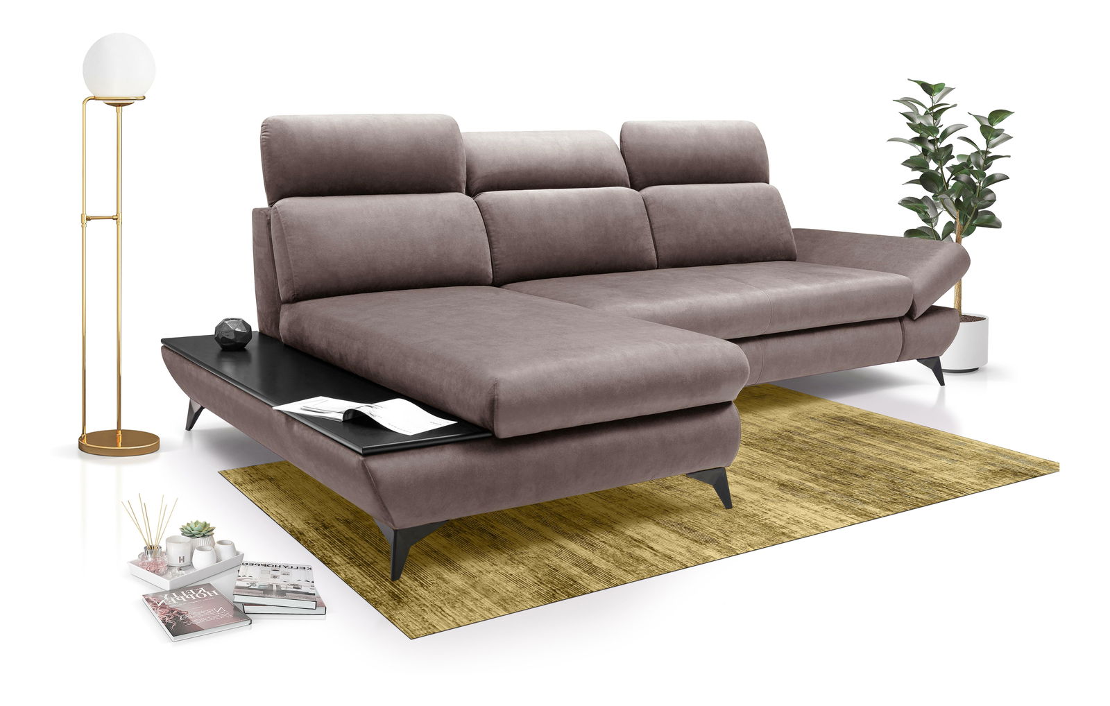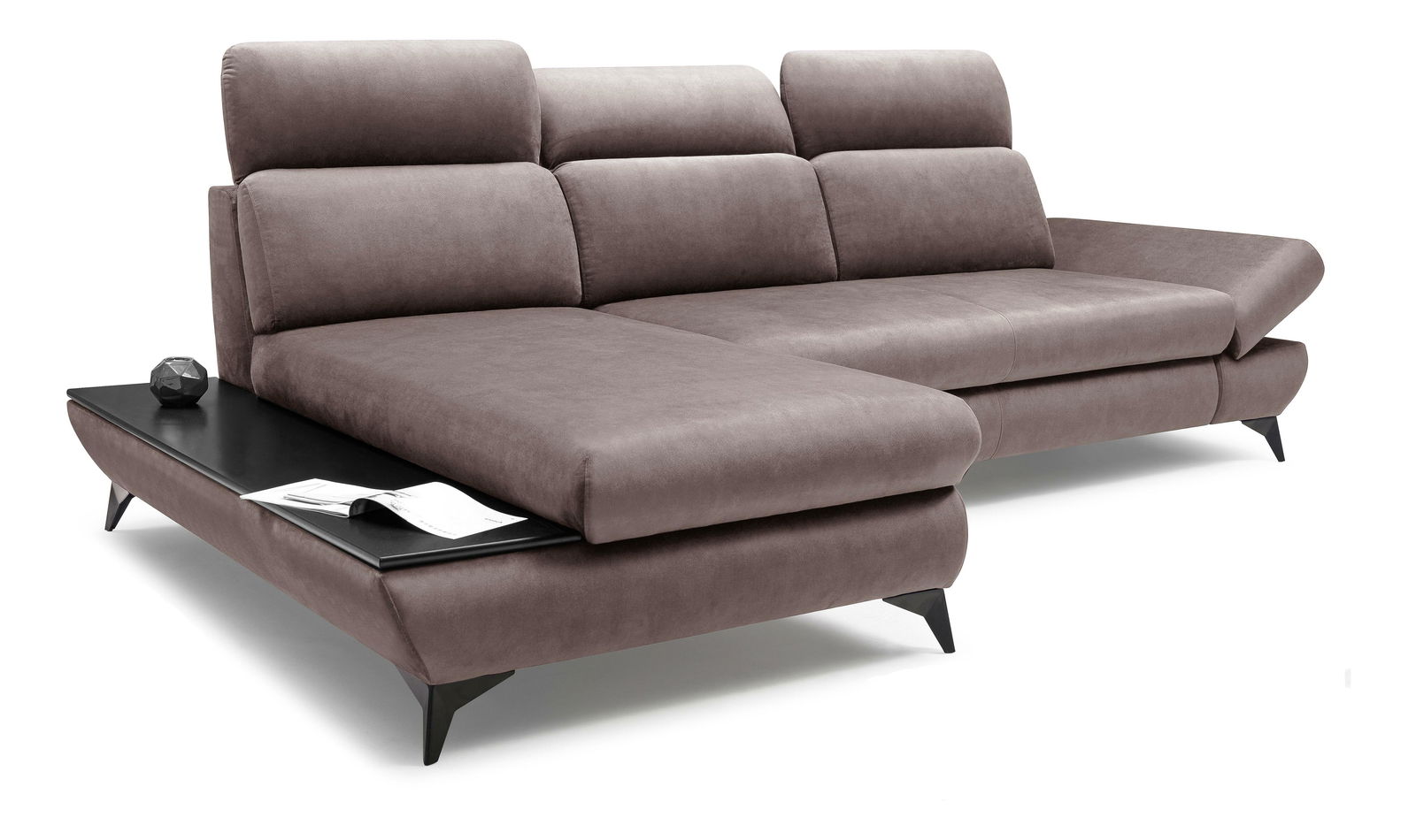 ZobrazitModerní rohová sedací souprava s konstrukcí ze dřeva a dřevotřísky nabízí pevnost a trvanlivost. Sedák je vyroben z PUR pěny a pružin, což zajišťuje pohodlné sezení. Sedačka je rozkládací s plochou na spaní 125 x 216 cm. Výška sezení je 45 cm, hloubka sezení 60 cm a výška područky je Max. 59 cm. Sedačka disponuje úložným prostorem a záda jsou potažena stejnou látkou, což zaručuje jednotný vzhled. Nastavitelné opěrky hlavy a područky zvyšují komfort. Kovové nožičky o výšce 12 cm dodávají sedačce moderní vzhled a stabilitu. Typ rozkládání je DL automat, což umožňuje snadné a rychlé rozkládání.