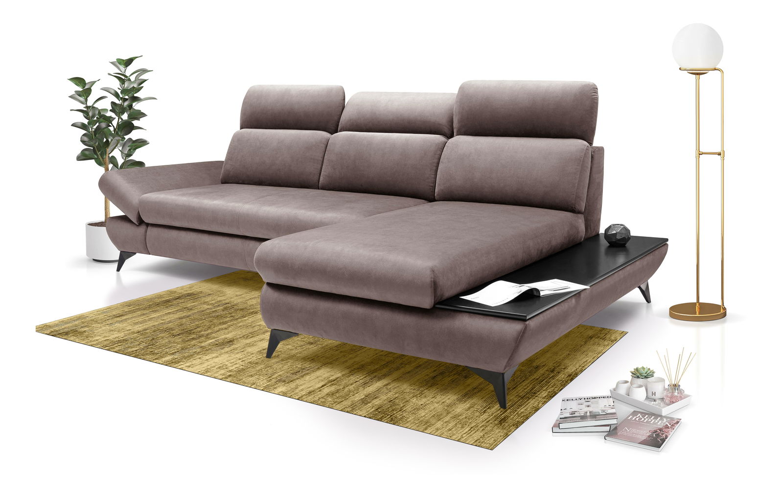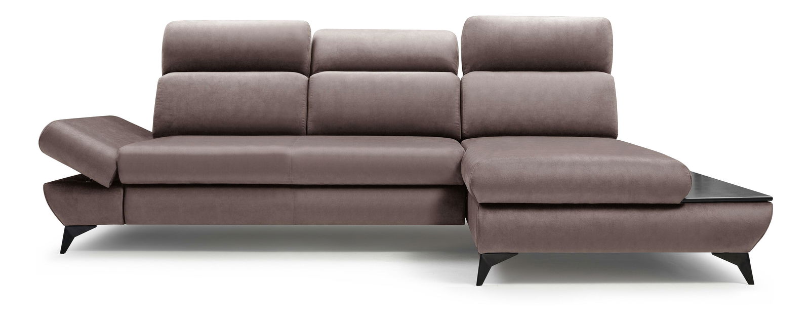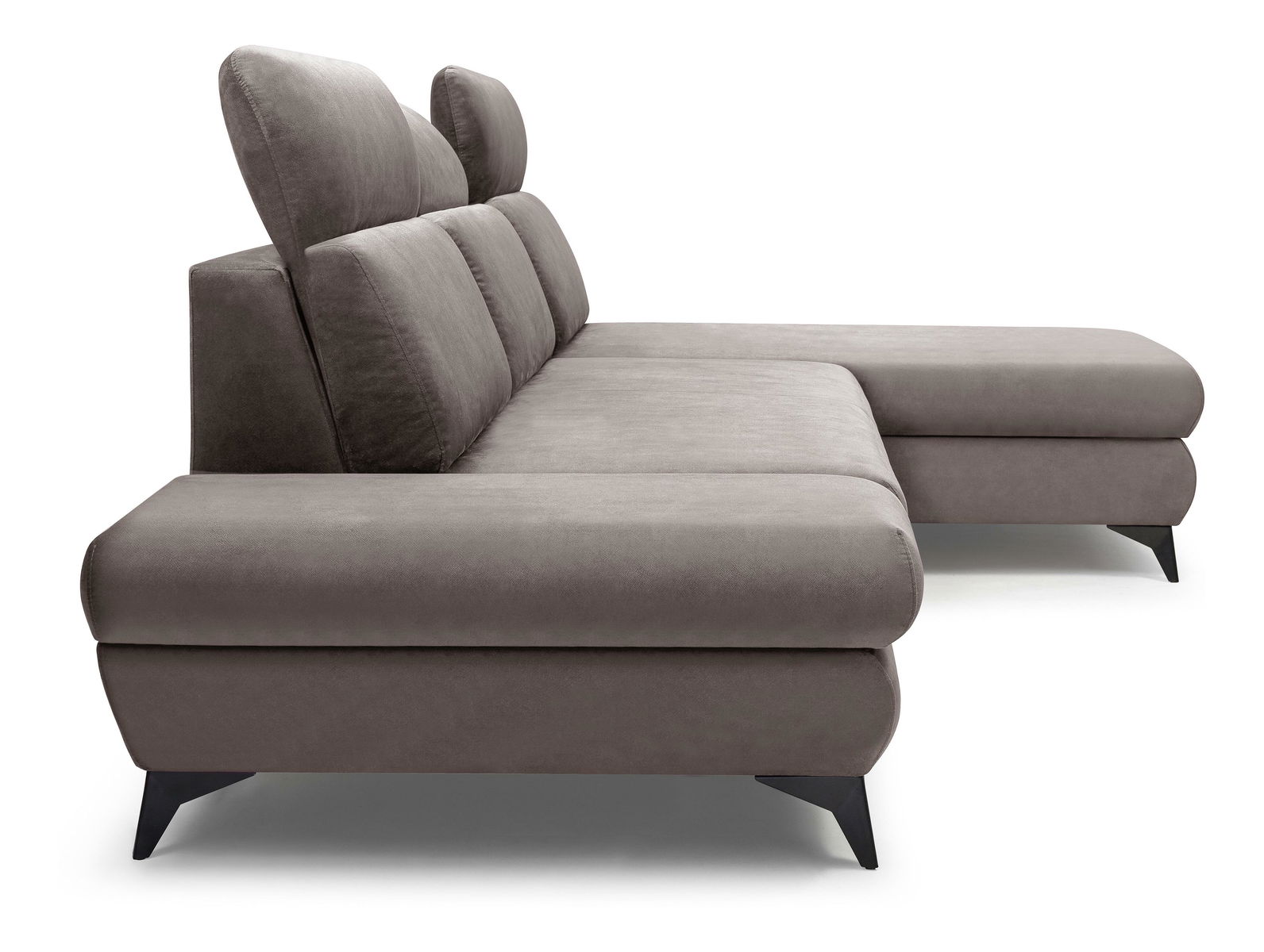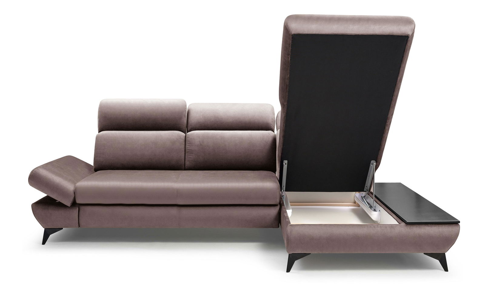 ZobrazitModerní rohová sedací souprava s konstrukcí ze dřeva a dřevotřísky nabízí pevnost a trvanlivost. Sedák je vyroben z PUR pěny a pružin, což zajišťuje pohodlné sezení. Sedačka je rozkládací s plochou na spaní 125 x 216 cm. Výška sezení je 45 cm, hloubka sezení 60 cm a výška područky je Max. 59 cm. Sedačka disponuje úložným prostorem a záda jsou potažena stejnou látkou, což zaručuje jednotný vzhled. Nastavitelné opěrky hlavy a područky zvyšují komfort. Kovové nožičky o výšce 12 cm dodávají sedačce moderní vzhled a stabilitu. Typ rozkládání je DL automat, což umožňuje snadné a rychlé rozkládání.