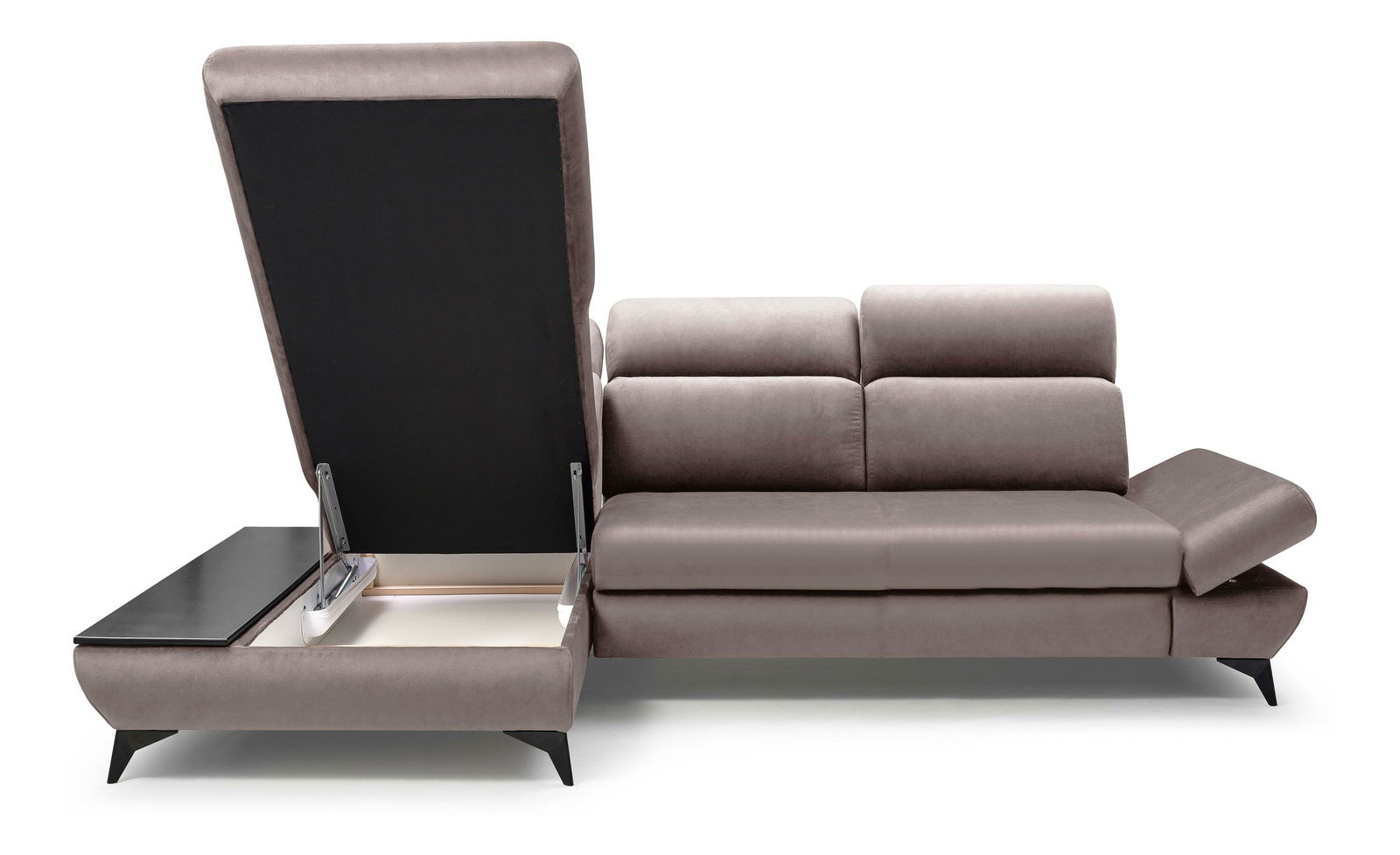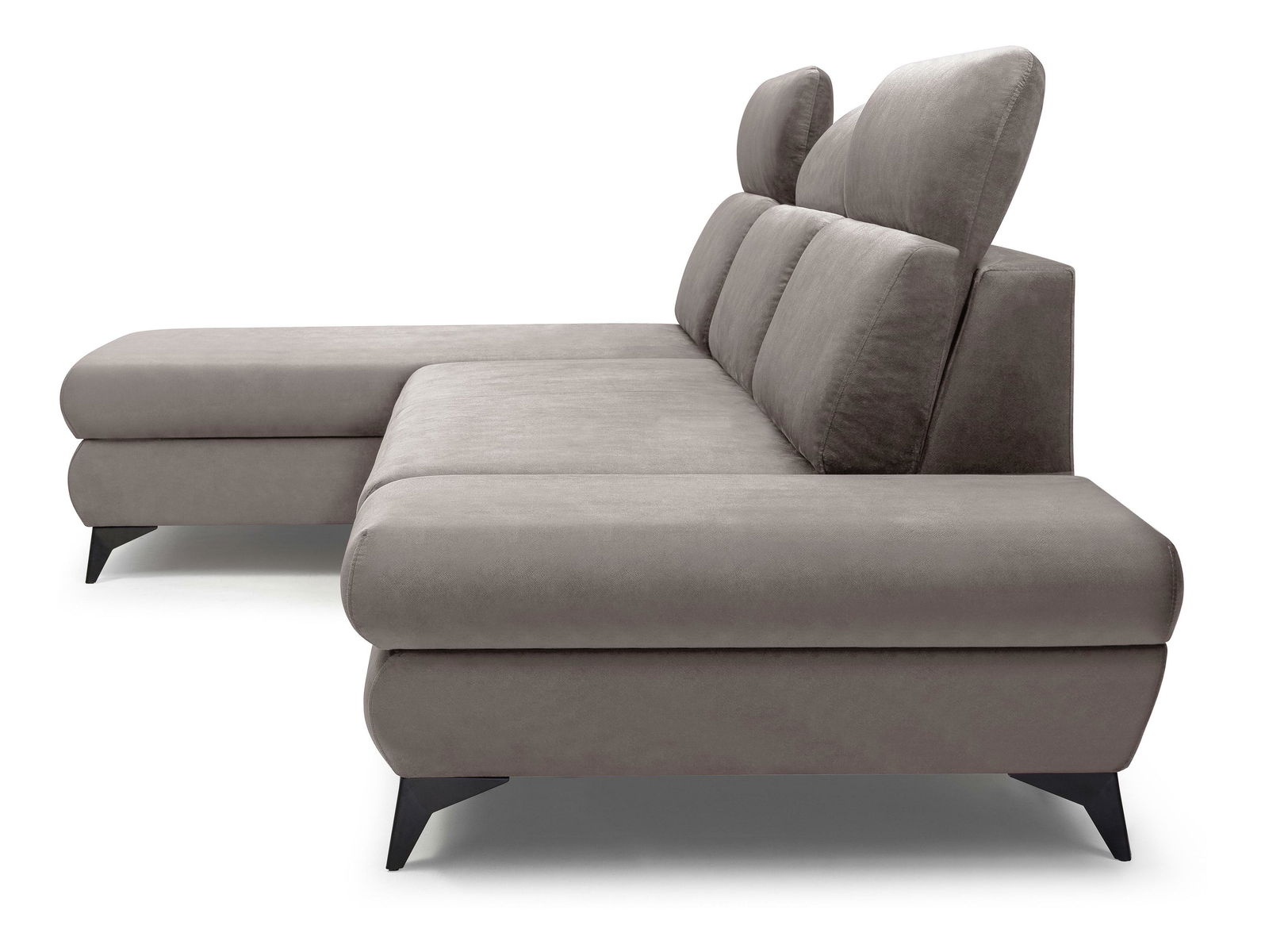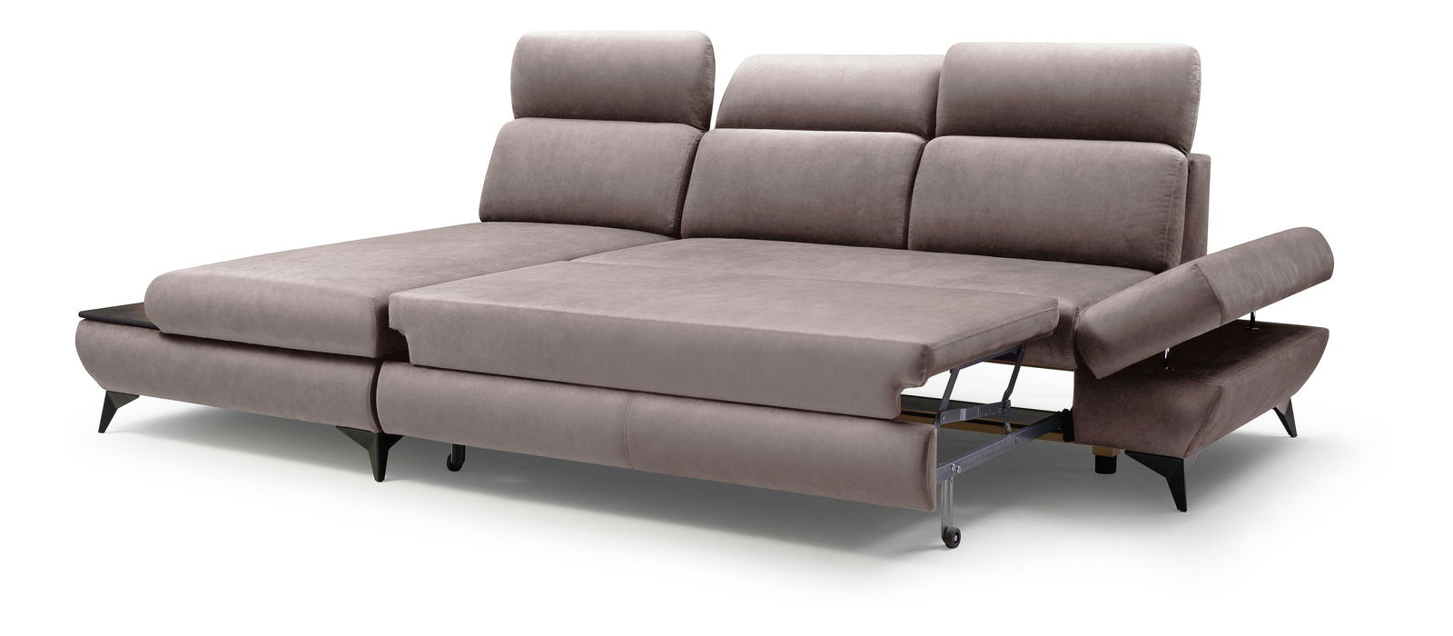 ZobrazitModerní rohová sedací souprava s konstrukcí ze dřeva a dřevotřísky nabízí pevnost a trvanlivost. Sedák je vyroben z PUR pěny a pružin, což zajišťuje pohodlné sezení. Sedačka je rozkládací s plochou na spaní 125 x 216 cm. Výška sezení je 45 cm, hloubka sezení 60 cm a výška područky je Max. 59 cm. Sedačka disponuje úložným prostorem a záda jsou potažena stejnou látkou, což zaručuje jednotný vzhled. Nastavitelné opěrky hlavy a područky zvyšují komfort. Kovové nožičky o výšce 12 cm dodávají sedačce moderní vzhled a stabilitu. Typ rozkládání je DL automat, což umožňuje snadné a rychlé rozkládání.