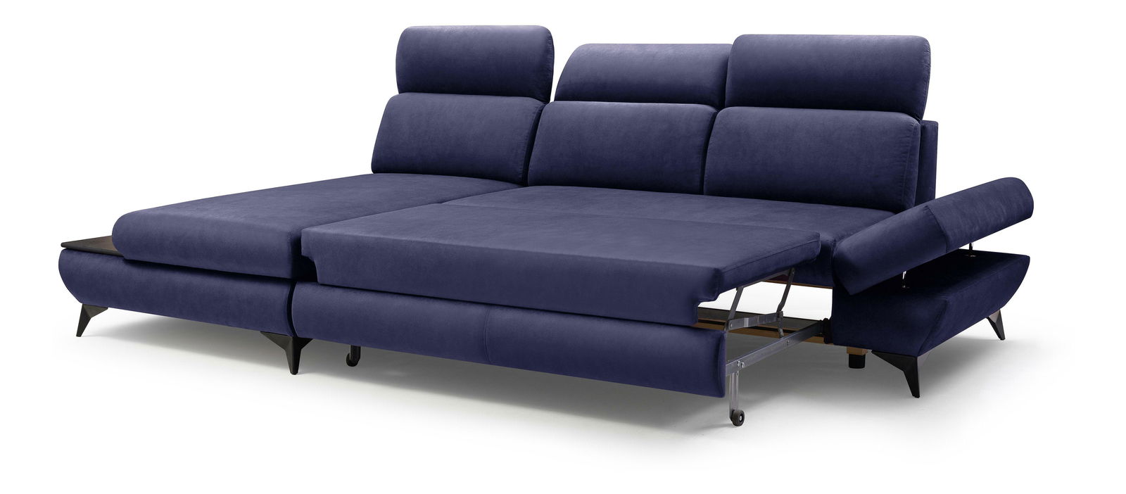 ZobrazitModerní rohová sedací souprava s konstrukcí ze dřeva a dřevotřísky nabízí pevnost a trvanlivost. Sedák je vyroben z PUR pěny a pružin, což zajišťuje pohodlné sezení. Sedačka je rozkládací s plochou na spaní 125 x 216 cm. Výška sezení je 45 cm, hloubka sezení 60 cm a výška područky je Max. 59 cm. Sedačka disponuje úložným prostorem a záda jsou potažena stejnou látkou, což zaručuje jednotný vzhled. Nastavitelné opěrky hlavy a područky zvyšují komfort. Kovové nožičky o výšce 12 cm dodávají sedačce moderní vzhled a stabilitu. Typ rozkládání je DL automat, což umožňuje snadné a rychlé rozkládání.