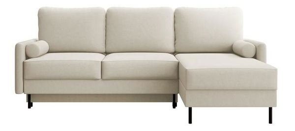Hledáte módní nábytek do obývacího pokoje? Rozkládací rohová sedačka bude skvělou volbou! Rohová pohovka je tvarem se současným tvarem, který dokonale zapadne do každého moderního aranžmá. Tělo je namontováno na štíhlých kvých nohách, které konstrukci poskytují stabilní oporu. Sedák je vyplněn polyuretanovou pěnou a vlnovými pružinami – díky tomu je nábytek pružný a rychle se vrací do původního tvaru, aniž by byl plný nevzhledných prohlubní. má funkci spánku a automatický mechanismus usnadňující rozkládání, což vám umožní rychle přeměnit rohovou pohovku na pohodlnou postel s velkou plochou. Pod sedadlem je prostorná přihrádka na lůžkoviny, kde pohodlně uložíte všechny potřebné textilie. Detaily produktu: rohová sedačka je univerzální, nábytek je ve tvaru L, montáž: samostatná, styl: moderní, nábytek je čalouněný látkou Castel 03, Castel je na dotek příjemný samet s hladkou úpravou. Vysoce odolný proti oděru, žmolkování a tření. Pod vlivem světla nevybledne. Technologie Easy Cleaning umožňuje čištění vodou. Vyhovuje Cigaretovému testu, barva: béžová.