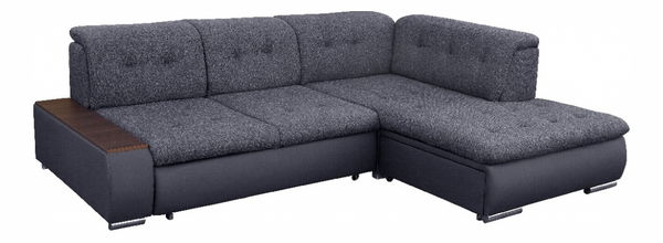 Krásná designová rohová sedačka Togo v provedení pravý roh stojící na kovových chromových nožkách působí dominantním uceleným tvarem hodící se do každé obývací místnosti. Sedačka je rozkládací s úložným prostorem, po rozložení se vytvoří rozměrná plocha na spaní o rozměru 208 cm délka a 145 cm šířka. Sedák je vyroben z pružiny, čímž je zaručen komfort měkkého sezení a tvarová trvanlivost sedačky. Boční opěrka na jedné straně je vybavena dřevěnou rovnou plochou - látky umístěnou nahoře na opěrce. Provedení je koženka černá - Madryt 1100 v kombinaci s černým šenil Berlin 02.